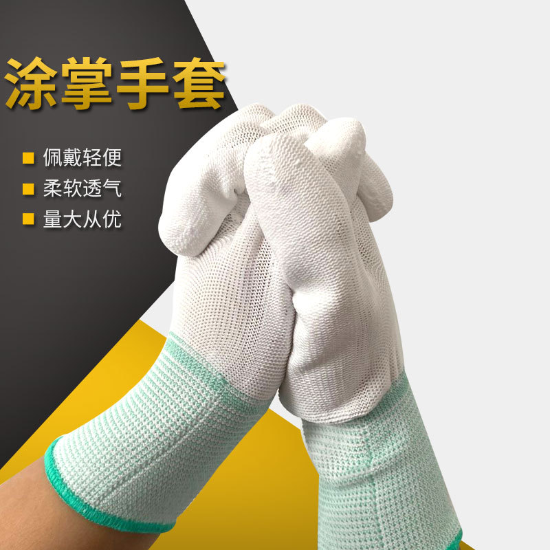 접착제로 코팅 된 흰색 PU 코팅 손바닥 장갑 전자 먼지가없는 통기성 남성 및 여성용 손바닥 코팅 노동 장갑 도매스토어 가기
