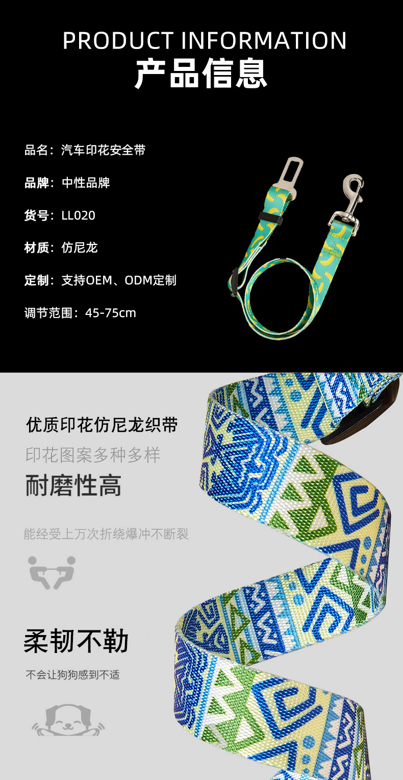 WAOPET 아마존 프린트 애완동물 차량용 안전벨트 강아지 목줄 자동차 용품 고급스러운 디자인
