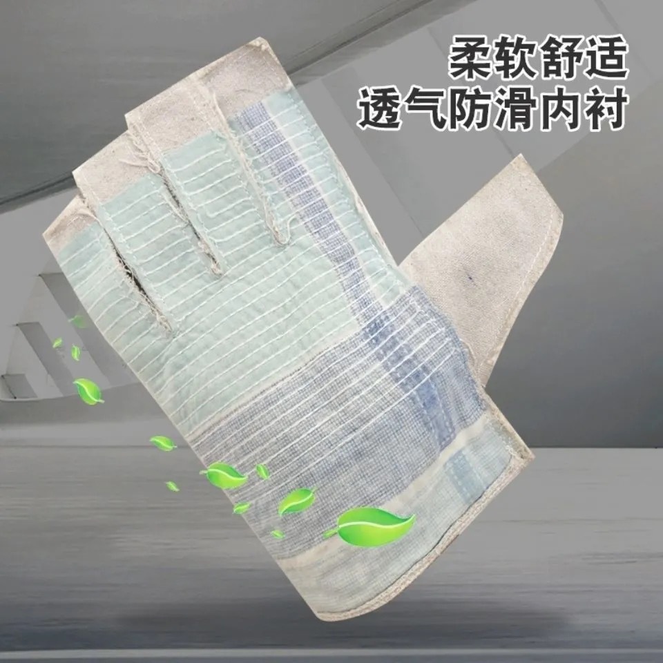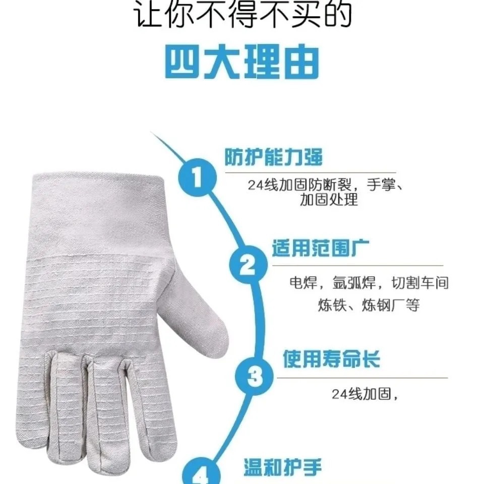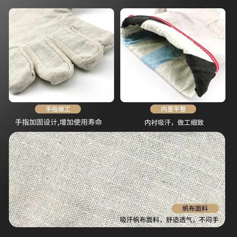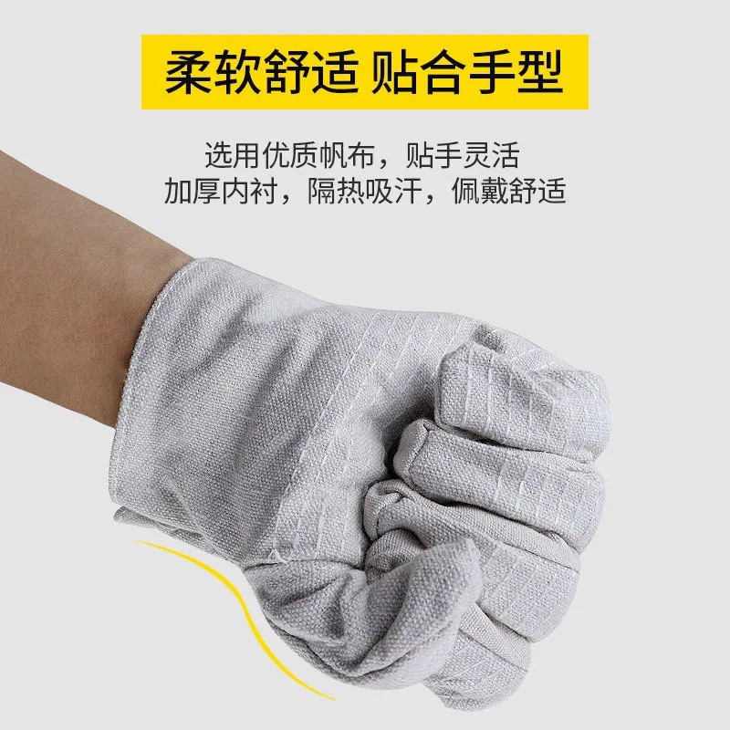 이중 두께의 흰색 천으로 완전히 안감 처리된 용접 장갑, 내유성, 연장형, 노동 보호, 화상 방지, 24줄 캔버스, 고온 저항스토어 가기