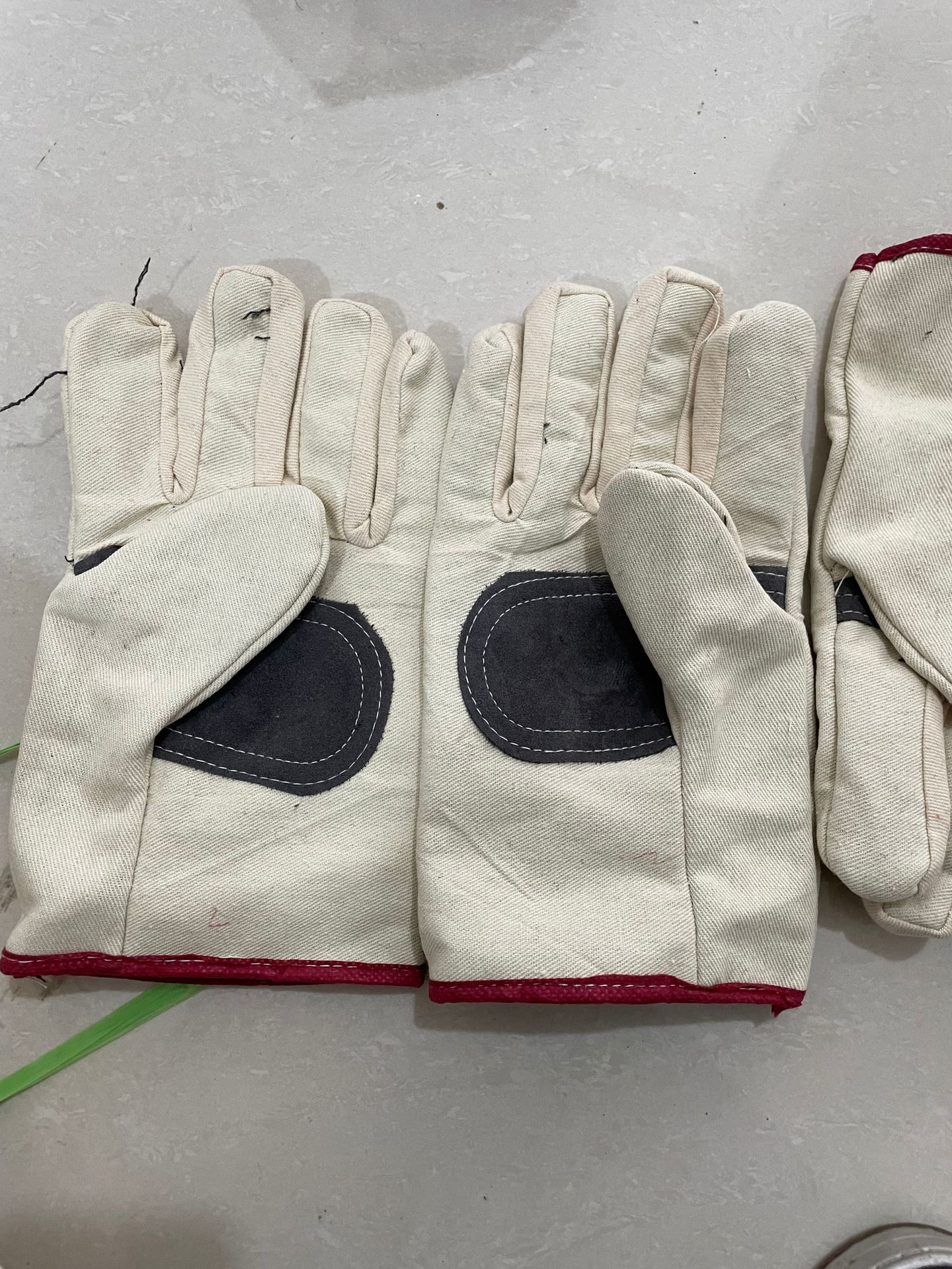 이중 두께의 흰색 천으로 완전히 안감 처리된 용접 장갑, 내유성, 연장형, 노동 보호, 화상 방지, 24줄 캔버스, 고온 저항