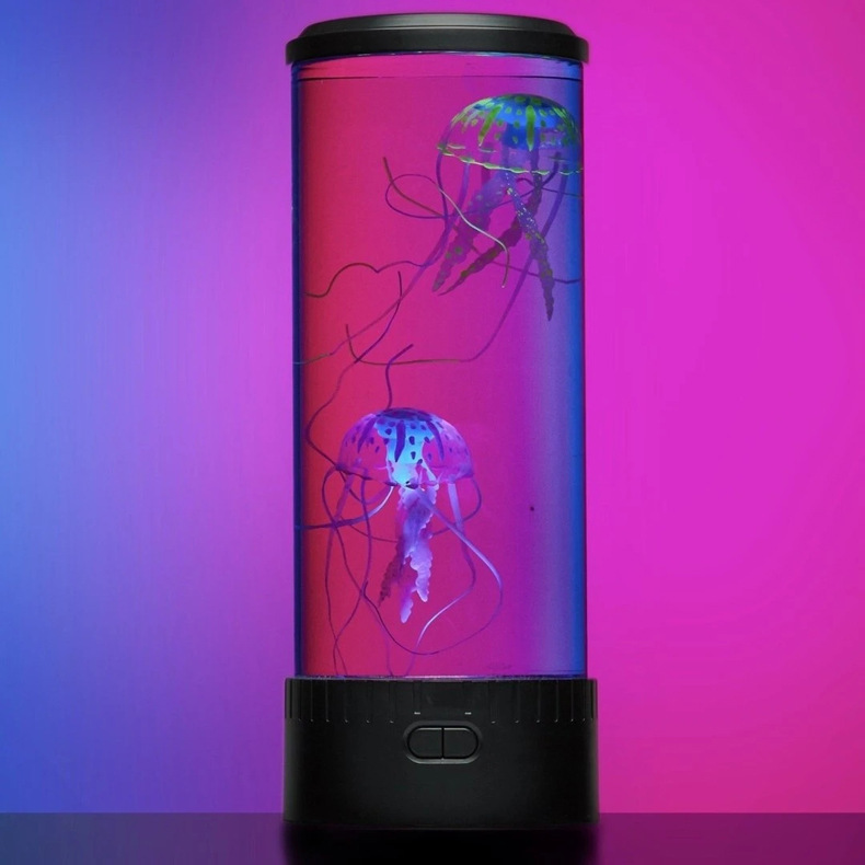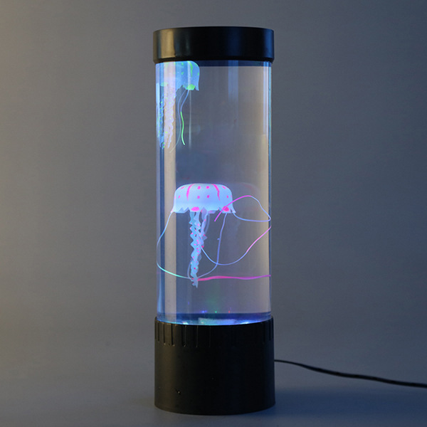 4、将水母的触须平整后,放入水中,盖上盖子。打开开关即可。