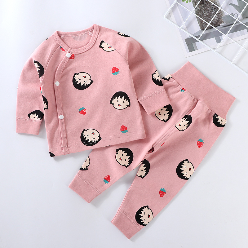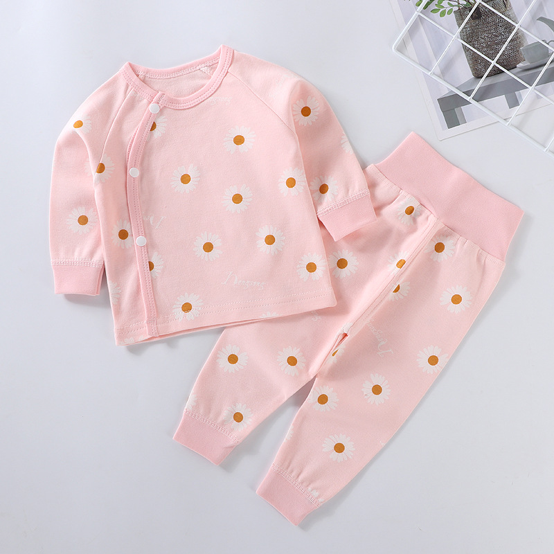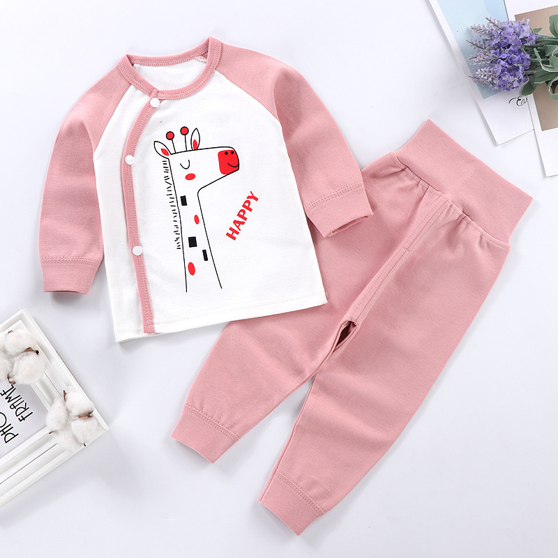 가을과 겨울 새로운 아기 속옷 세트 면 뼈없는 어린이 가을 옷 가을 바지 아기 하이 웨이스트 바지 배꼽 보호 가정 옷