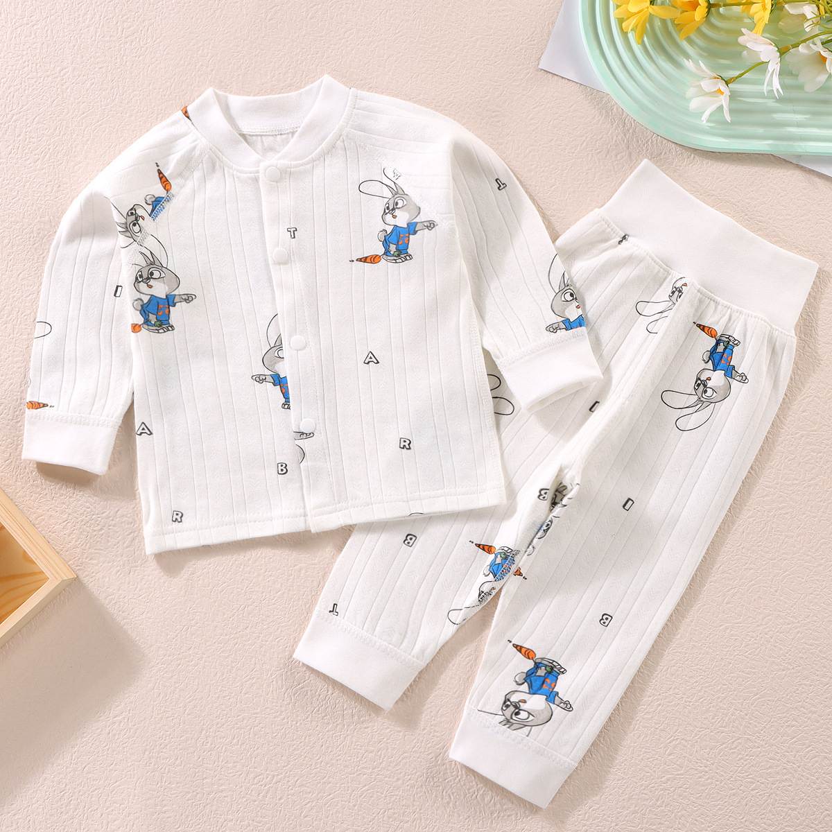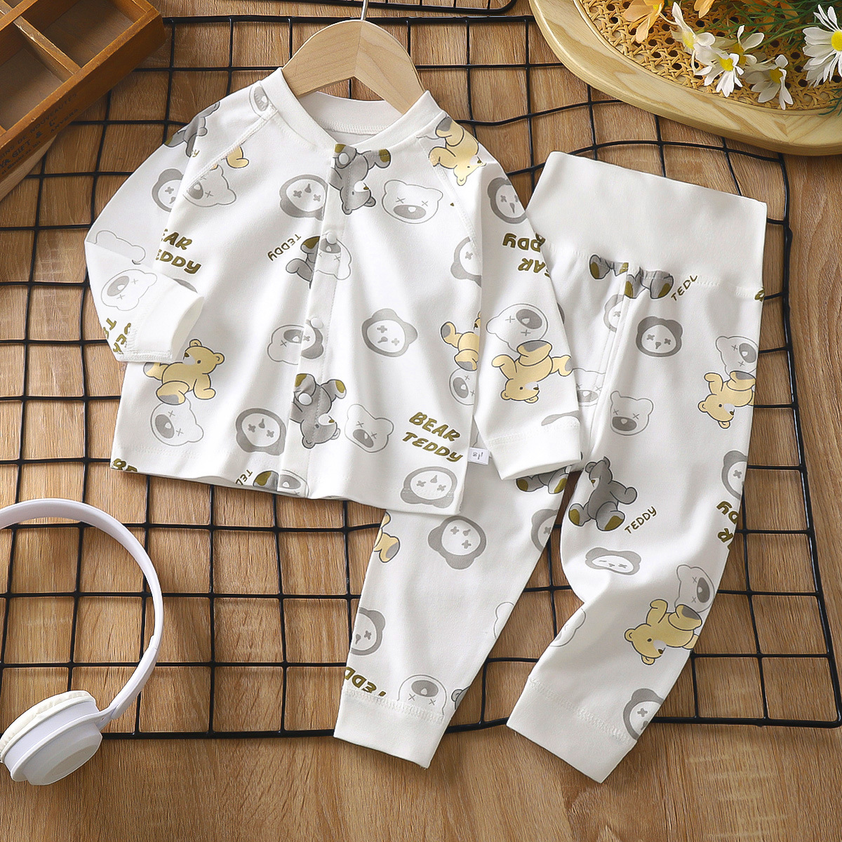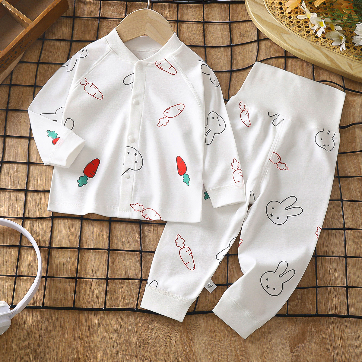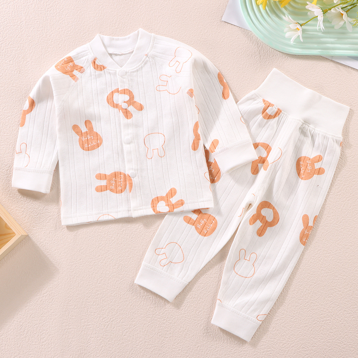 가을과 겨울 새로운 아기 속옷 세트 면 뼈없는 어린이 가을 옷 가을 바지 아기 하이 웨이스트 바지 배꼽 보호 가정 옷스토어 가기