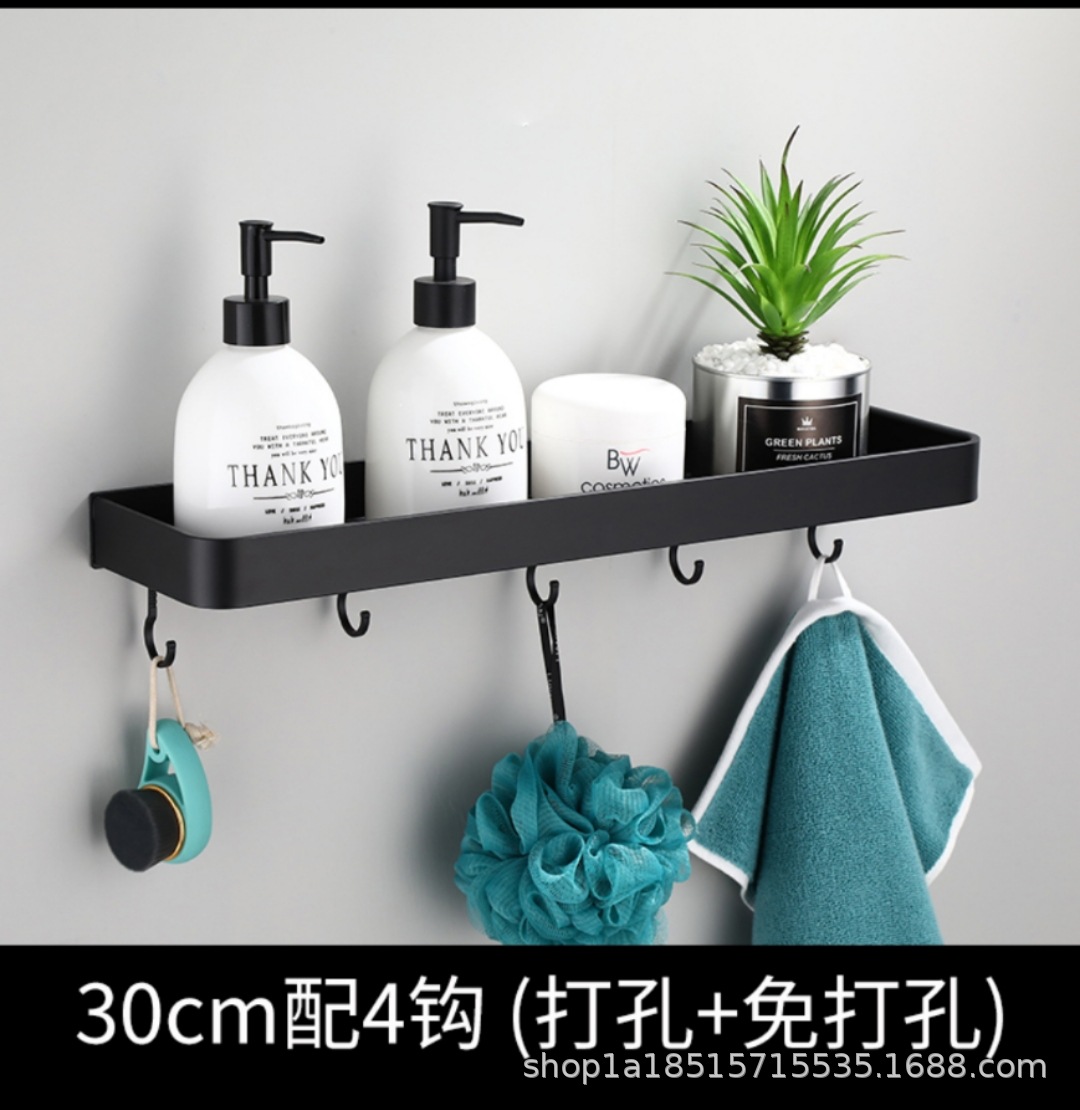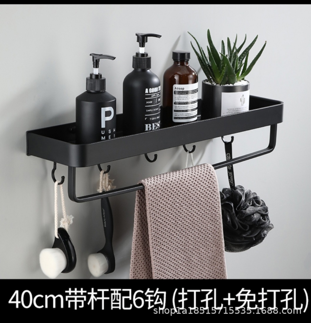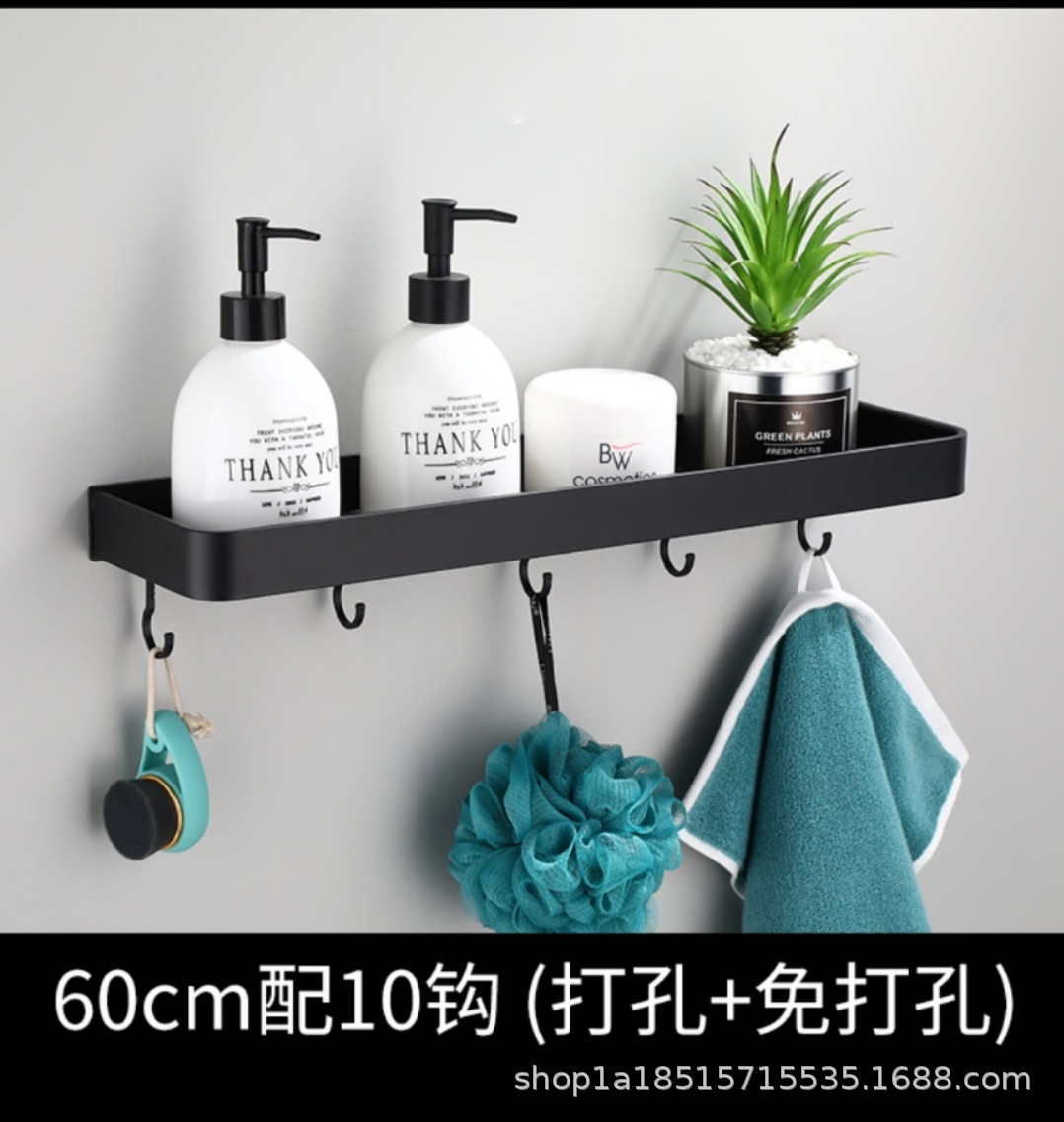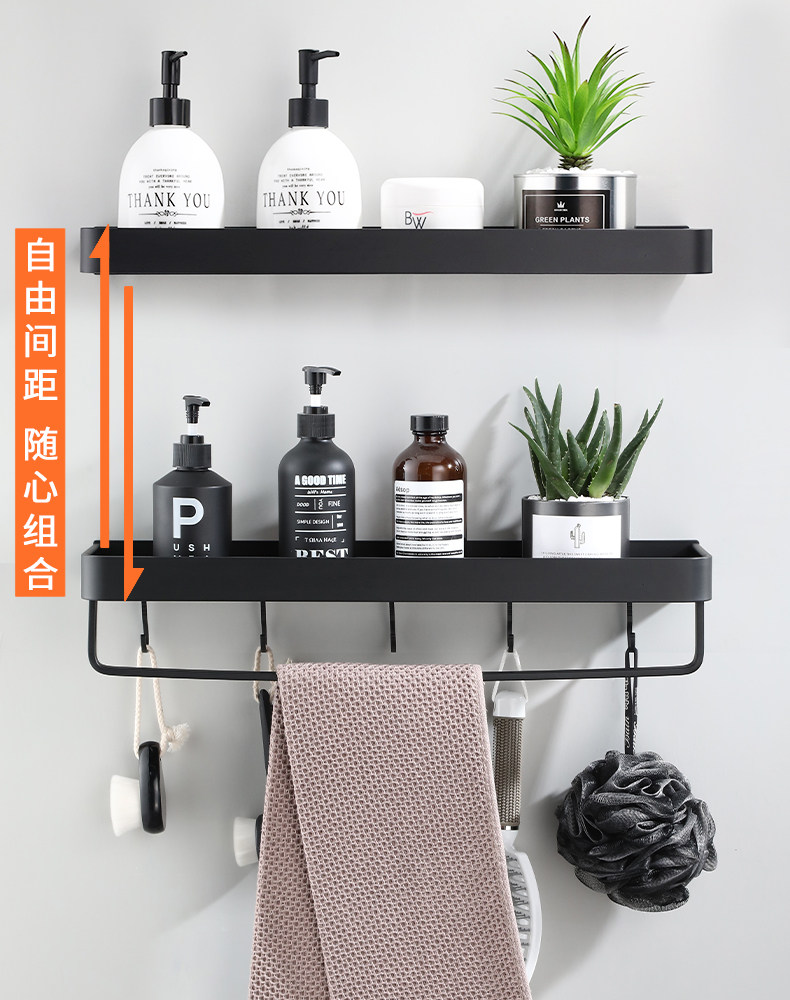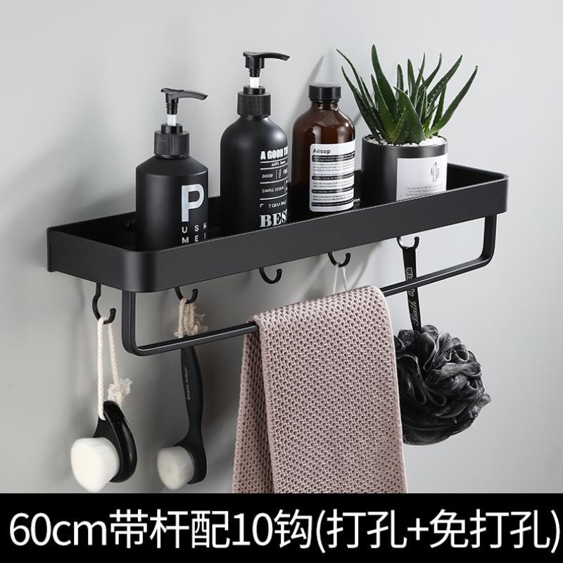 블랙 화장실 욕실 수납 랙 공간 알루미늄 벽걸이 형 화장실 세척 테이블 수건 걸이 수납 비 천공