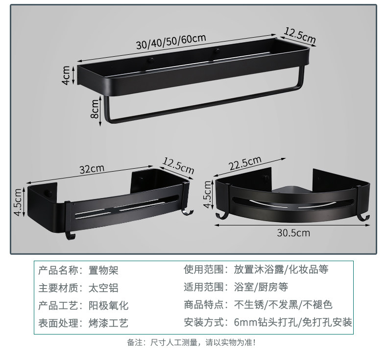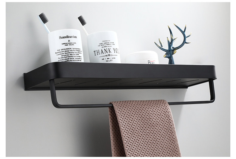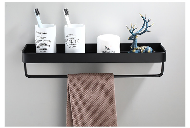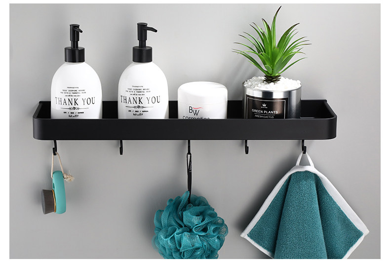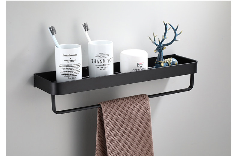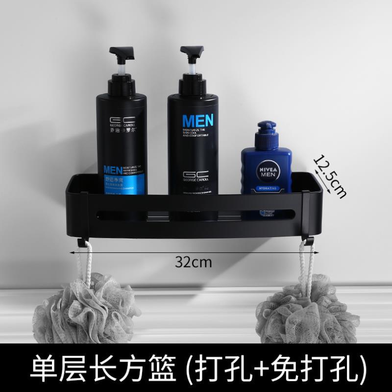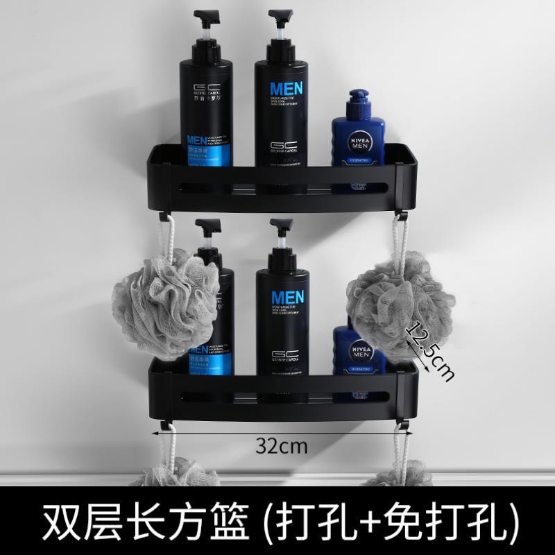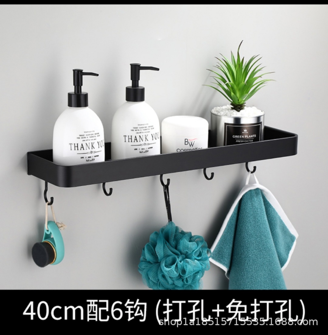 블랙 화장실 욕실 수납 랙 공간 알루미늄 벽걸이 형 화장실 세척 테이블 수건 걸이 수납 비 천공