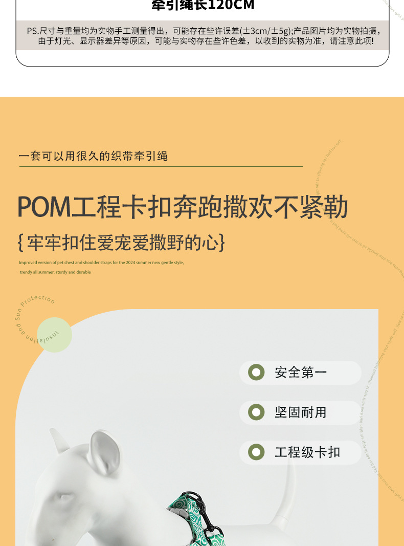 2.0cm*120cm,单项圈25g,单胸背65g,单绳子65g,三件套155g