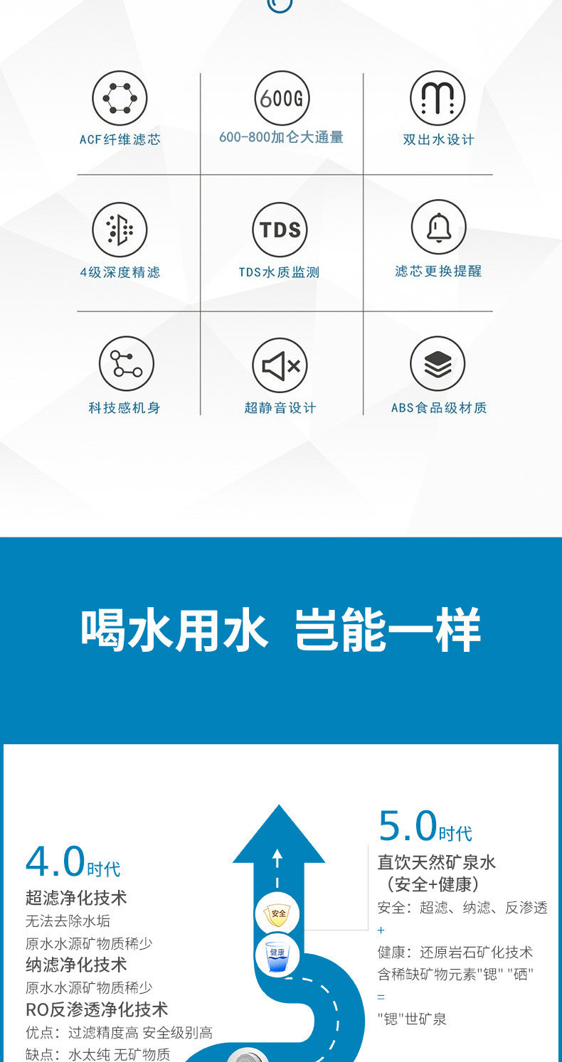 • 대유량 600갤런(이중수: 정수+스트론튬 광물수)