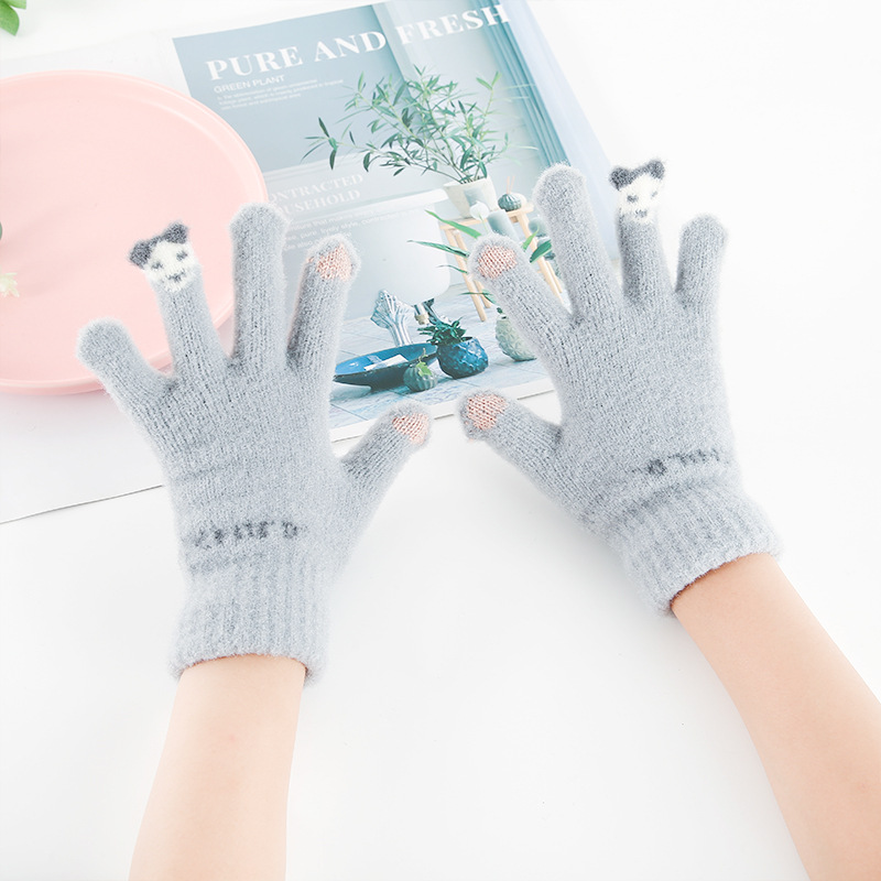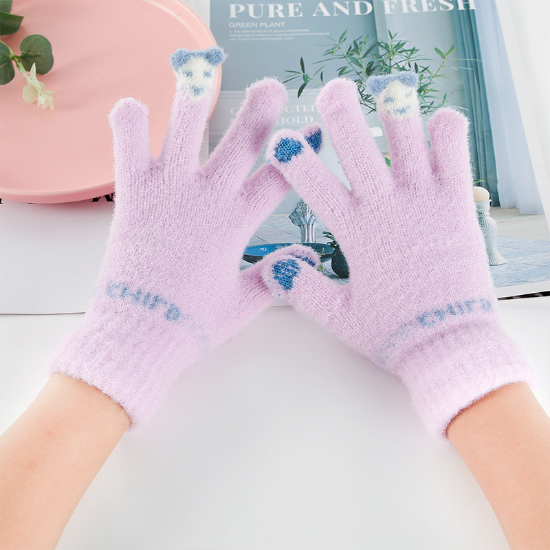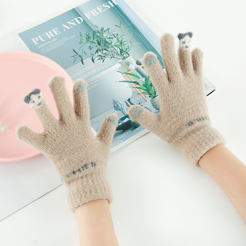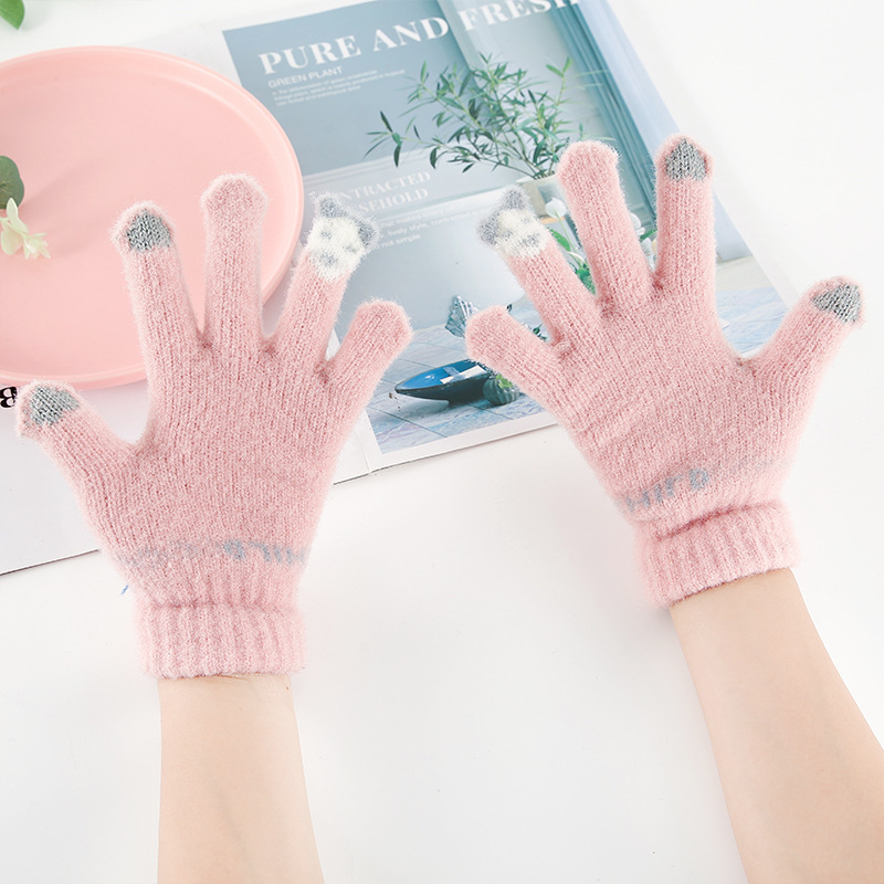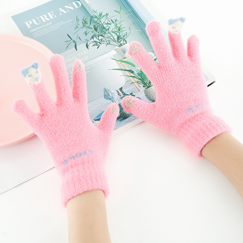 학생 아동 장갑 겨울 니트 기모 따뜻한 스키 장갑 터치 스크린 모조 밍크 울 장갑 대량 도매스토어 가기
