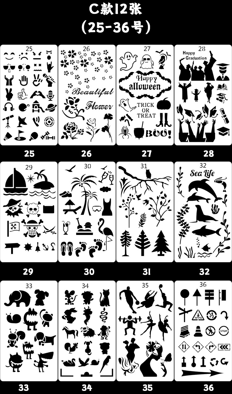 아마존 DIY 그림 템플릿 세트 할로윈 그림 템플릿 어린이 손 계정 그리기 중공 보조 템플릿