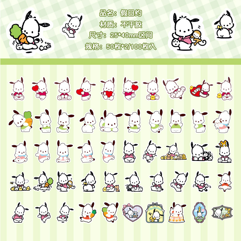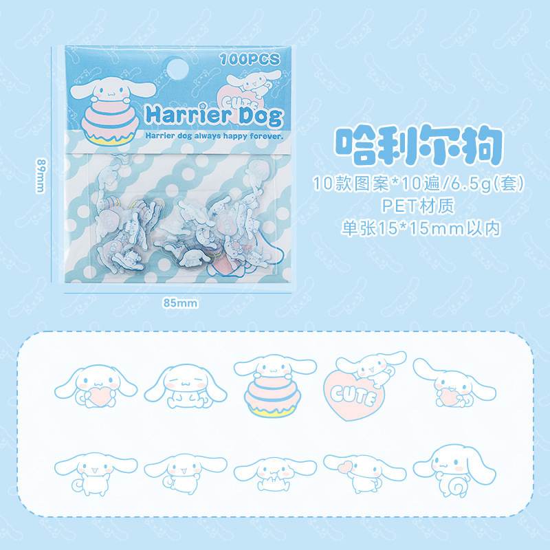 일본 귀여운 애완 동물 가족 청동 만화 장식 손 계정 PVC 투명 청동 스티커 가방 + 작은 보관 가방 W11