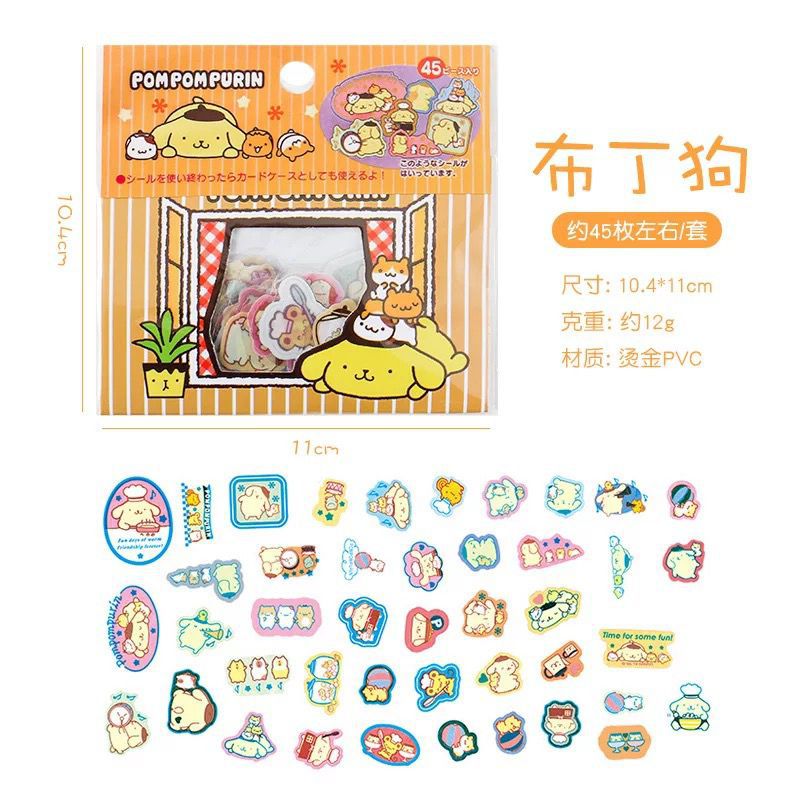 일본 귀여운 애완 동물 가족 청동 만화 장식 손 계정 PVC 투명 청동 스티커 가방 + 작은 보관 가방 W11스토어 가기