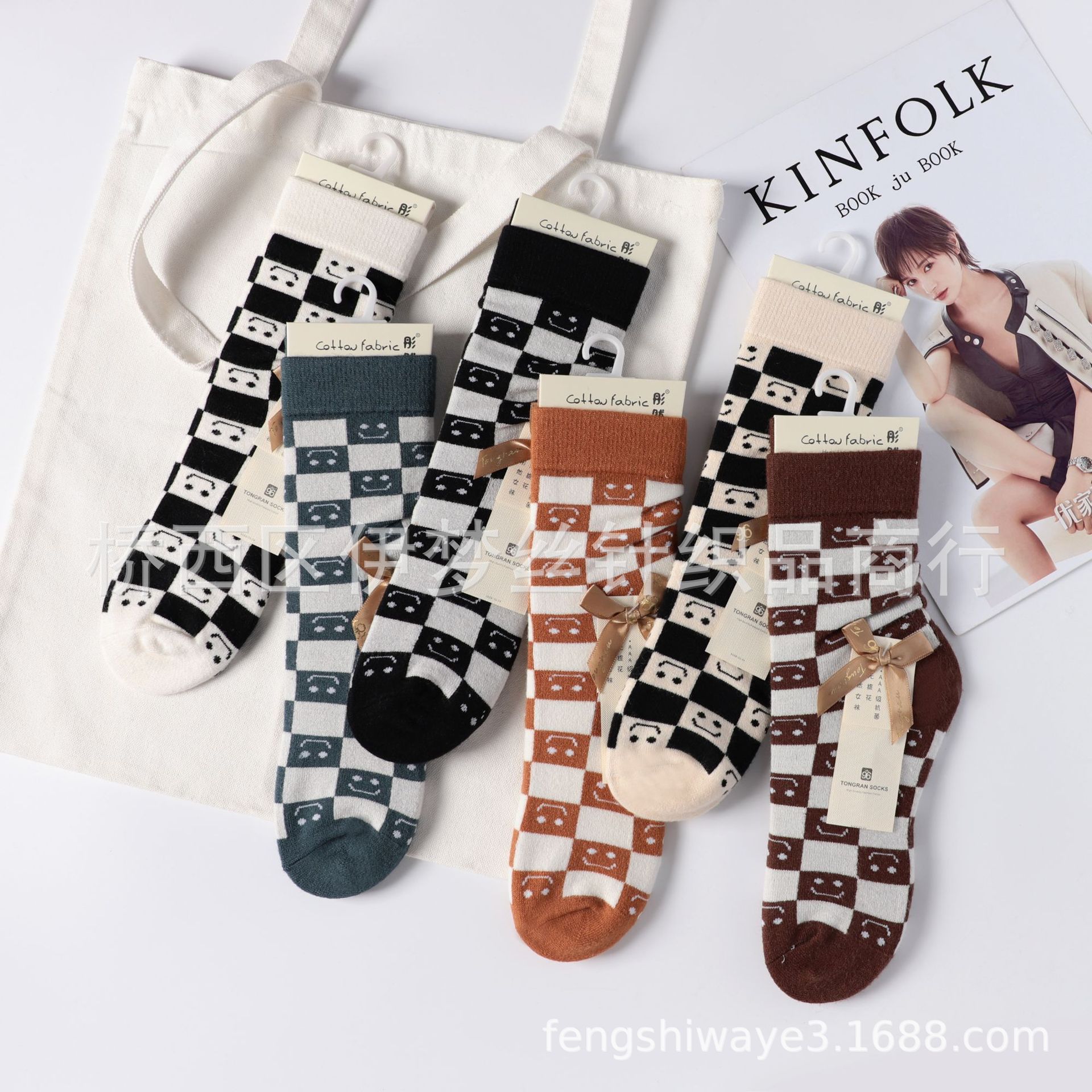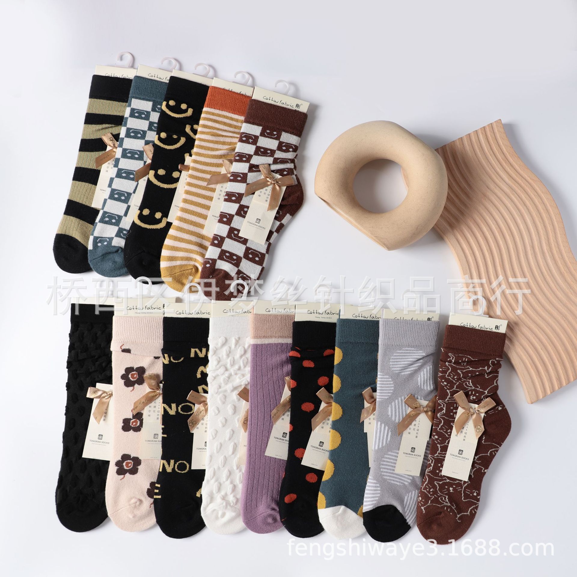 • Tong Ran 종이 카드 캐시미어 여성 양말 패턴 랜덤
