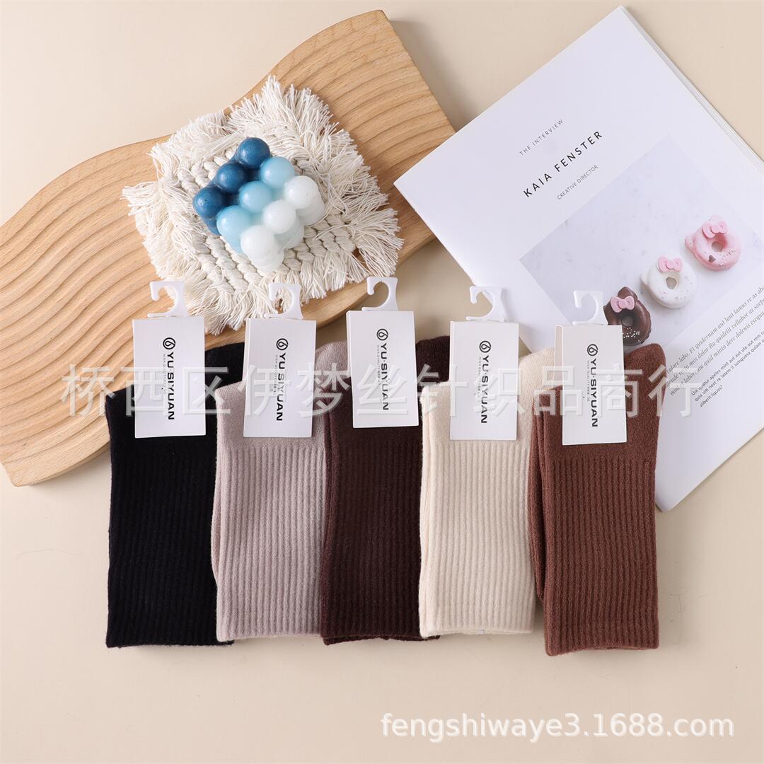 무료 배송 겨울용 두꺼운 캐시미어 남성 양말 여성용 스타킹 단색 캐주얼 하이웨이스트 울 부드러운 양말 시장에서 비교 가능