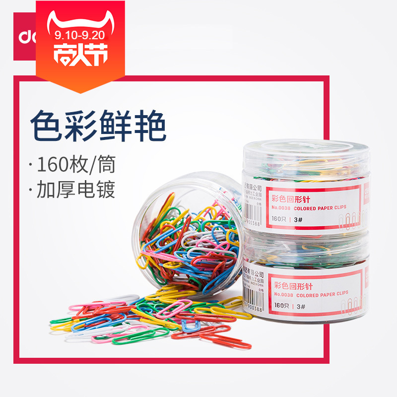 델리 종이 클립 0038 컬러 크리에이티브 귀여운 중형 종이 클립 사무용품 29mm 160 장/튜브스토어 가기