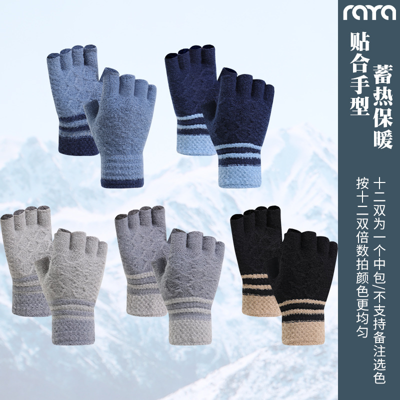 남성과 여성의 겨울 노출 두 손가락 장갑 사무실 쓰기 타이핑 노출-손가락 따뜻한 색상-일치하는 니트 손가락 장갑