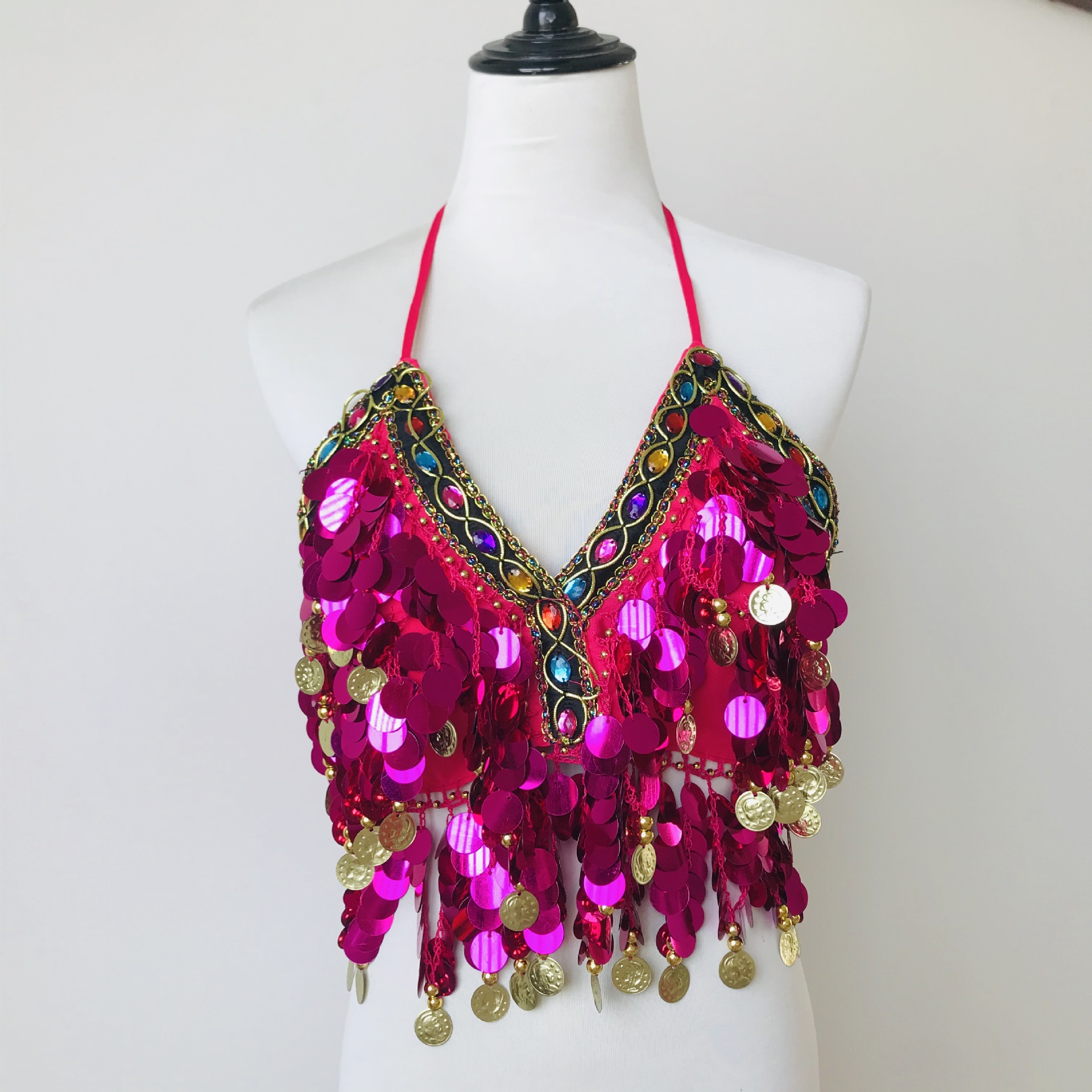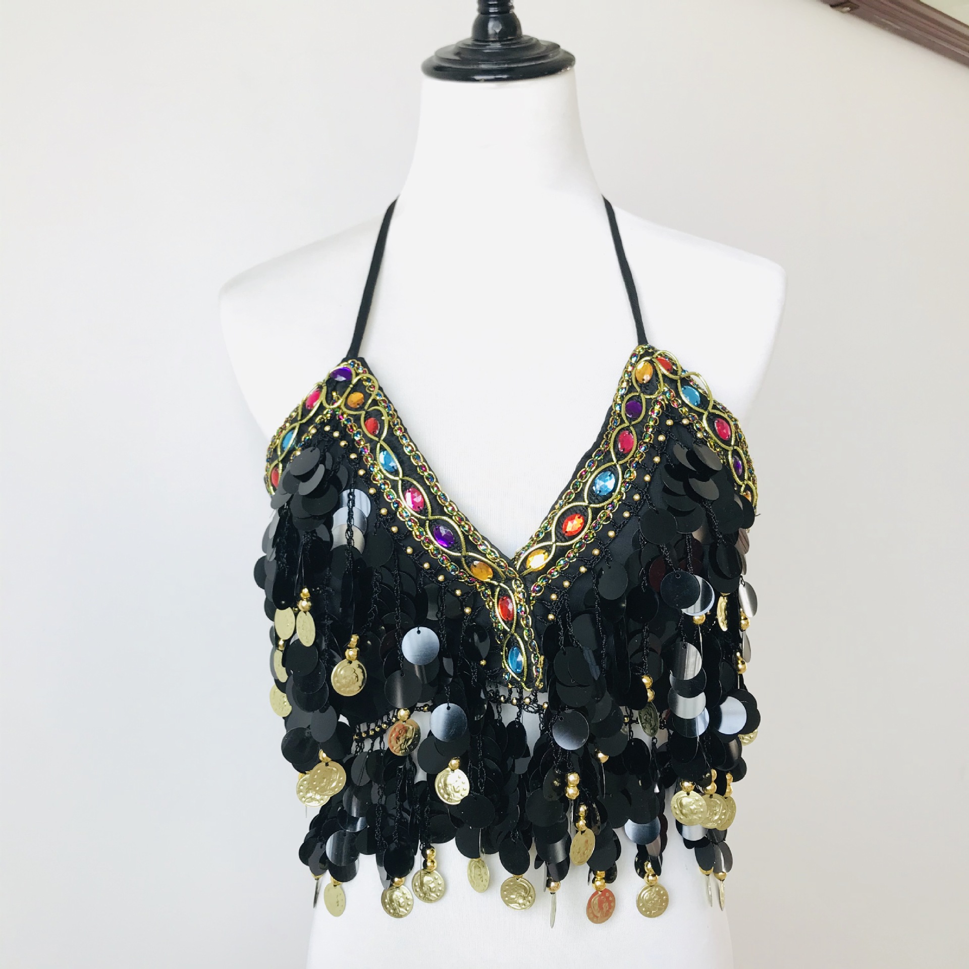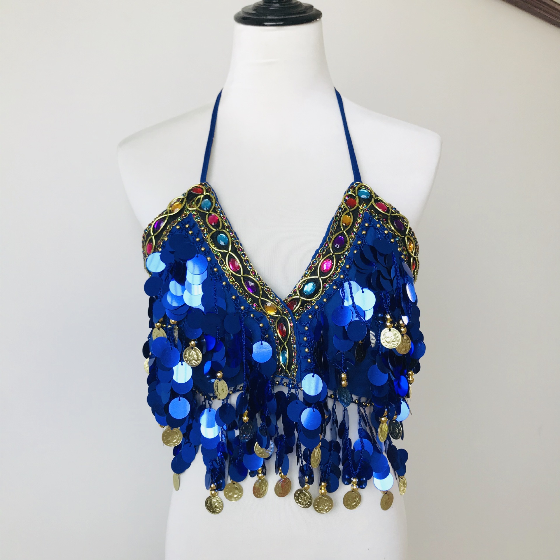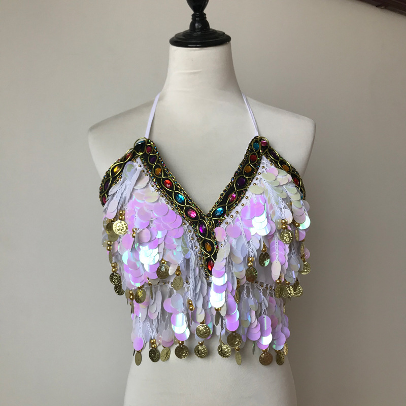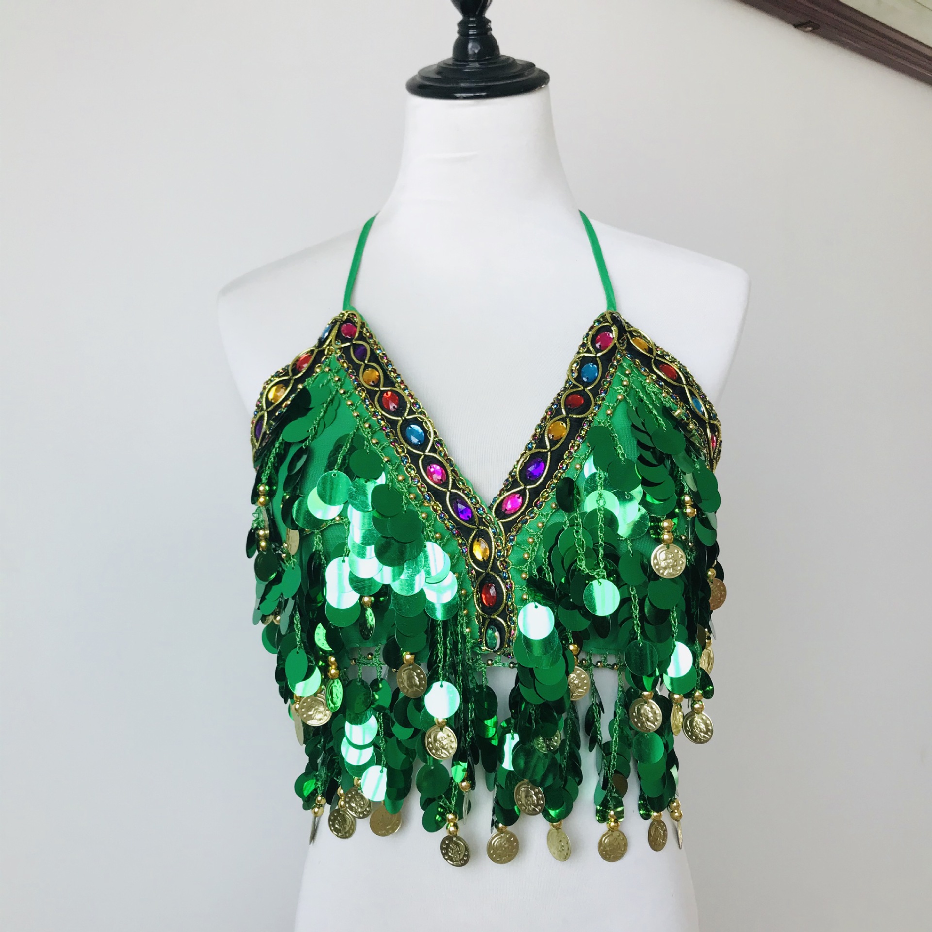 새로운 밸리 댄스 브라 탑 밸리 댄스 탑 브라 컬러 다이아몬드 브라 공 피스 코인 브라 여성용 코르셋