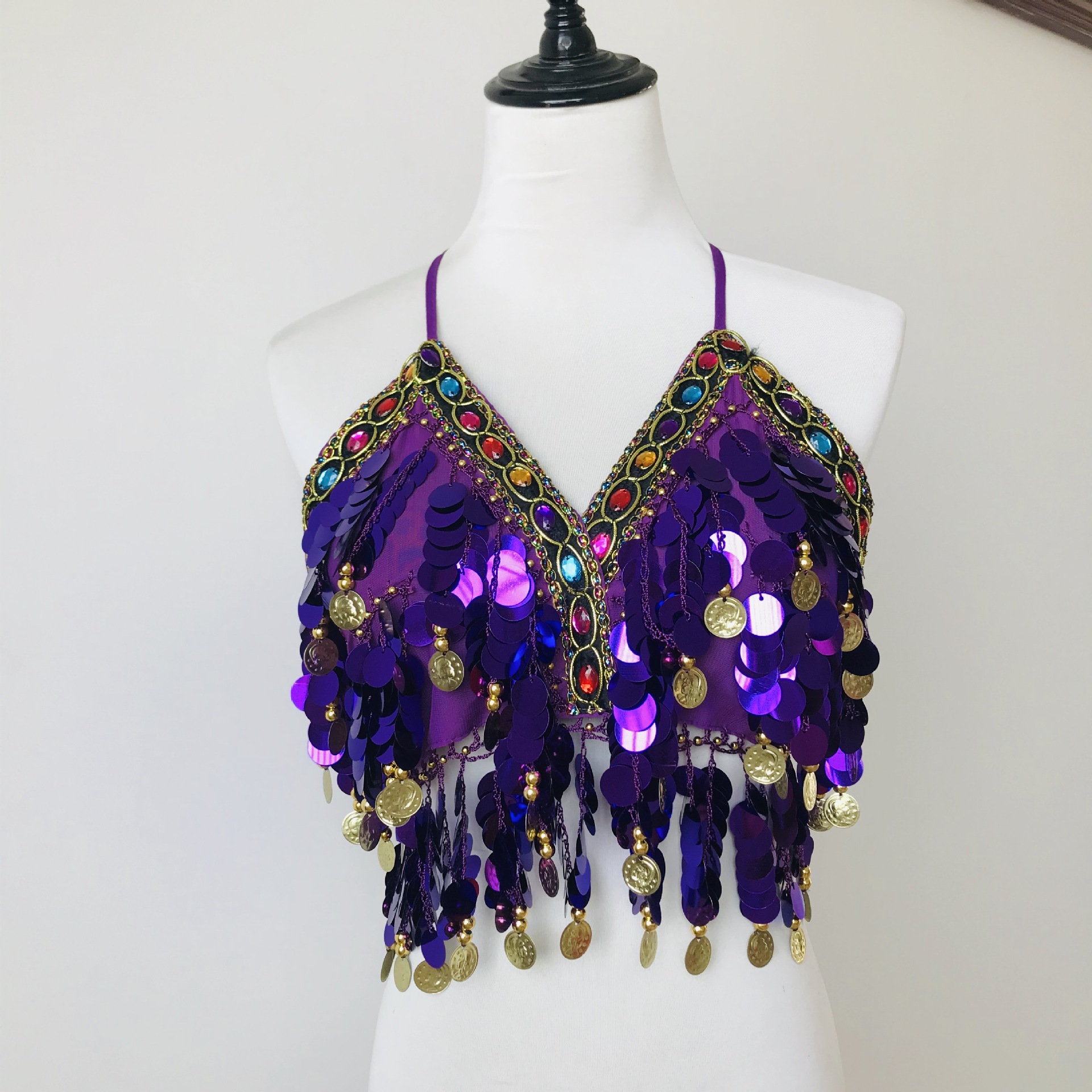 새로운 밸리 댄스 브라 탑 밸리 댄스 탑 브라 컬러 다이아몬드 브라 공 피스 코인 브라 여성용 코르셋스토어 가기