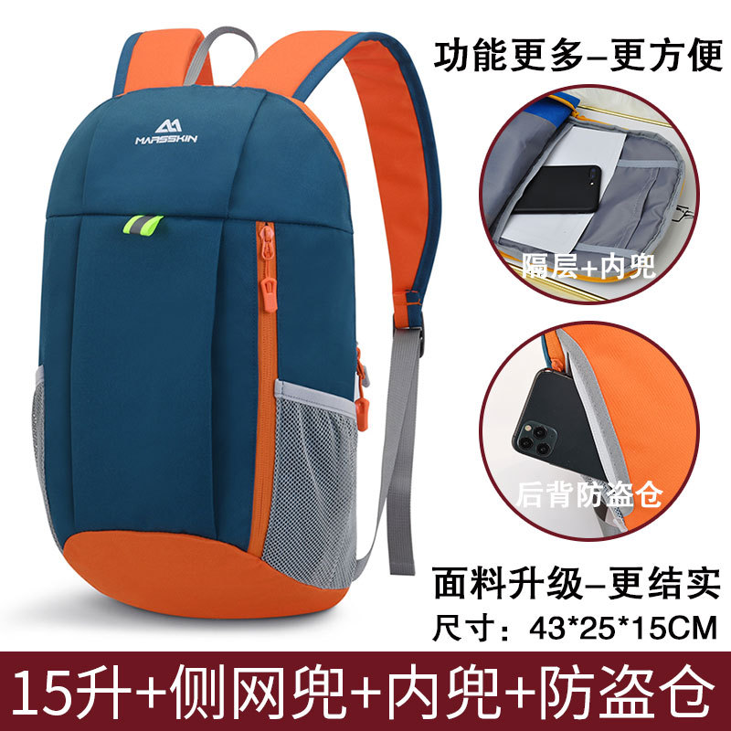 15L 백팩 등산 가방 남성 및 여성 레저 책가방 수선 수업 가방 경량 야외 스포츠 여행 가방
