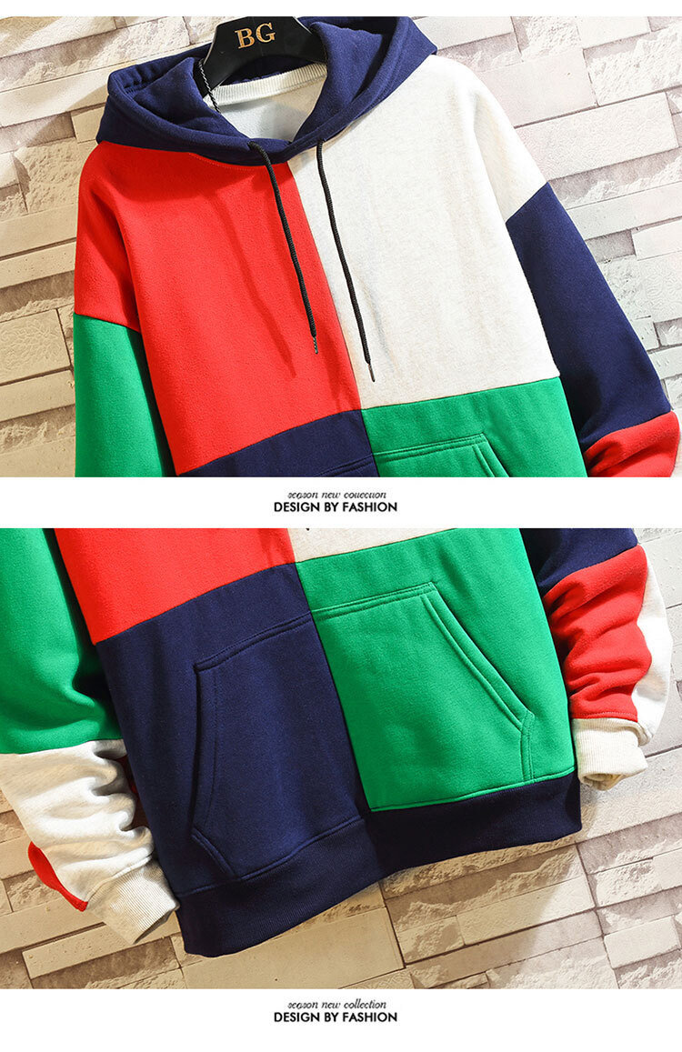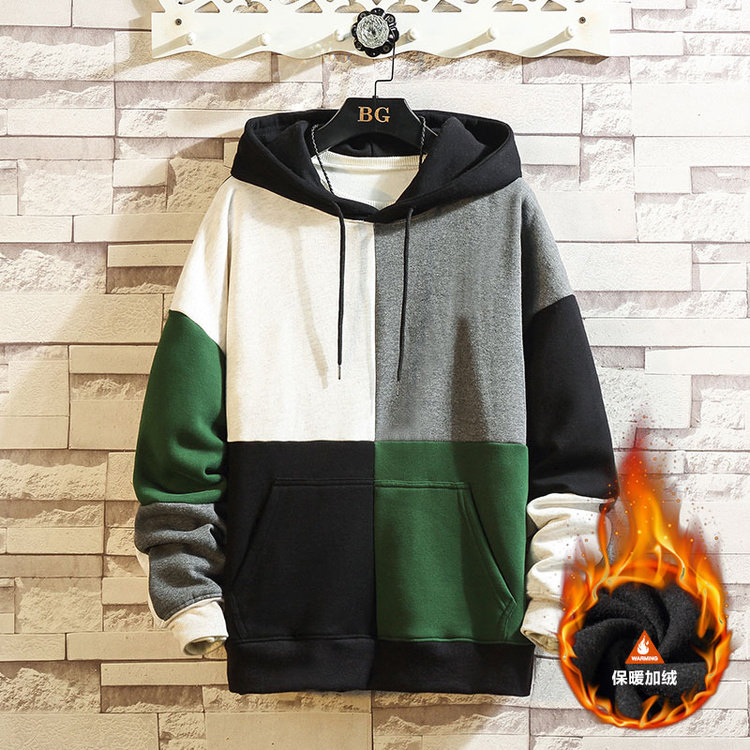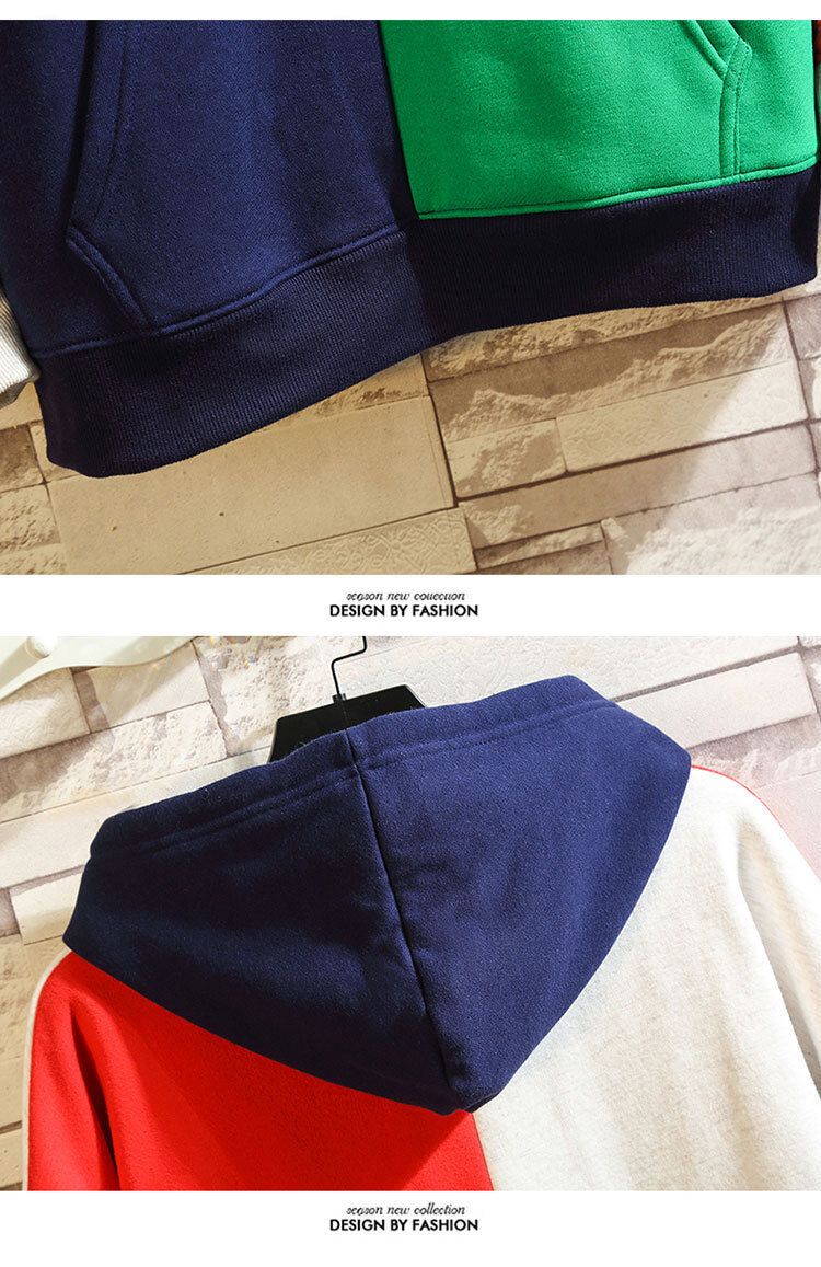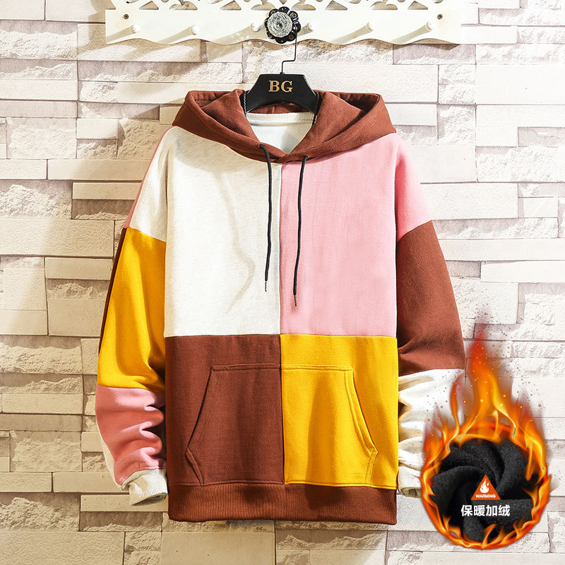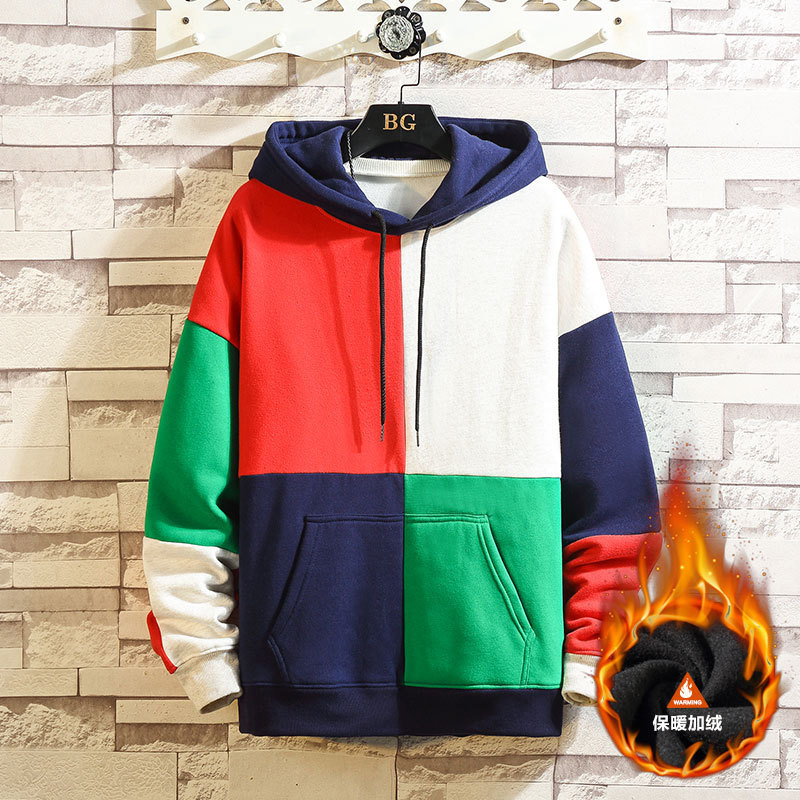 폭발적인 겨울 남성 후드 스웻셔츠 한국 스타일 유행 컬러 매칭 두꺼운 느슨한 초대형 캐주얼 탑스토어 가기