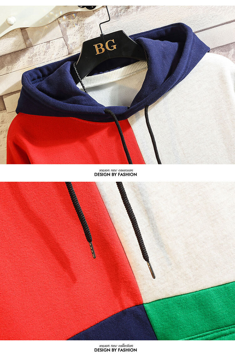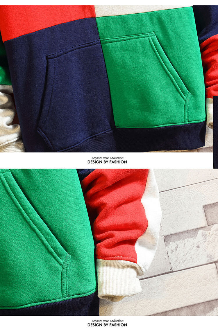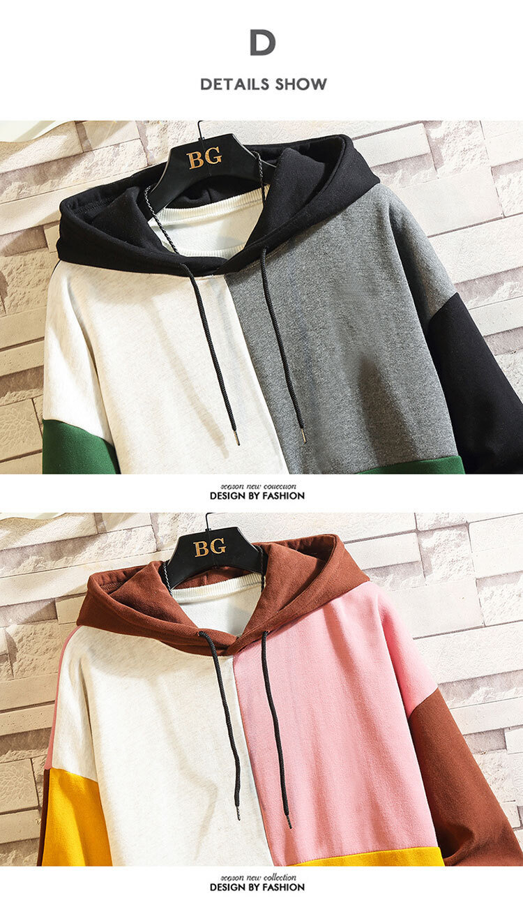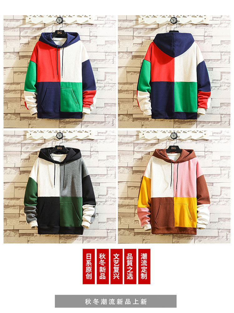 폭발적인 겨울 남성 후드 스웻셔츠 한국 스타일 유행 컬러 매칭 두꺼운 느슨한 초대형 캐주얼 탑스토어 가기