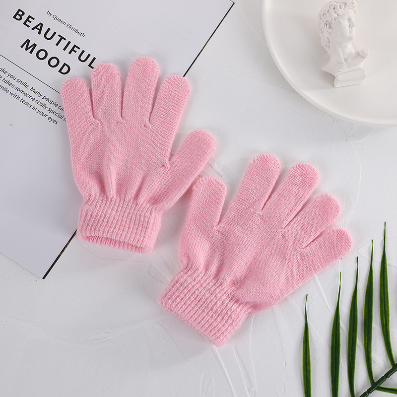 재고 도매 가을과 겨울 따뜻한 단색 니트 어린이 장갑 손가락 장갑 멀티 컬러 옵션 제조 업체 직접 공급
