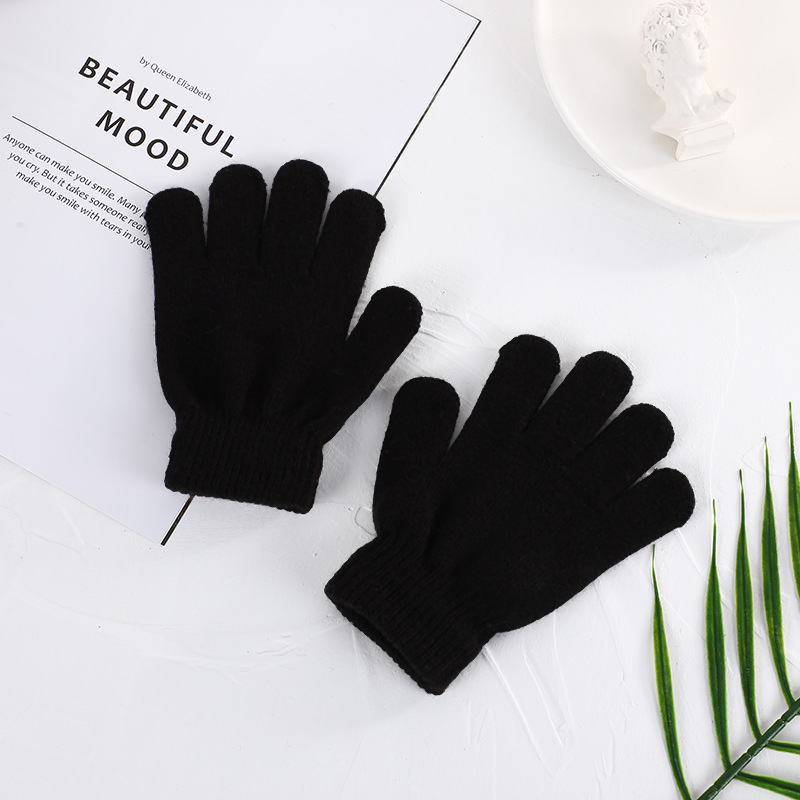 재고 도매 가을과 겨울 따뜻한 단색 니트 어린이 장갑 손가락 장갑 멀티 컬러 옵션 제조 업체 직접 공급스토어 가기