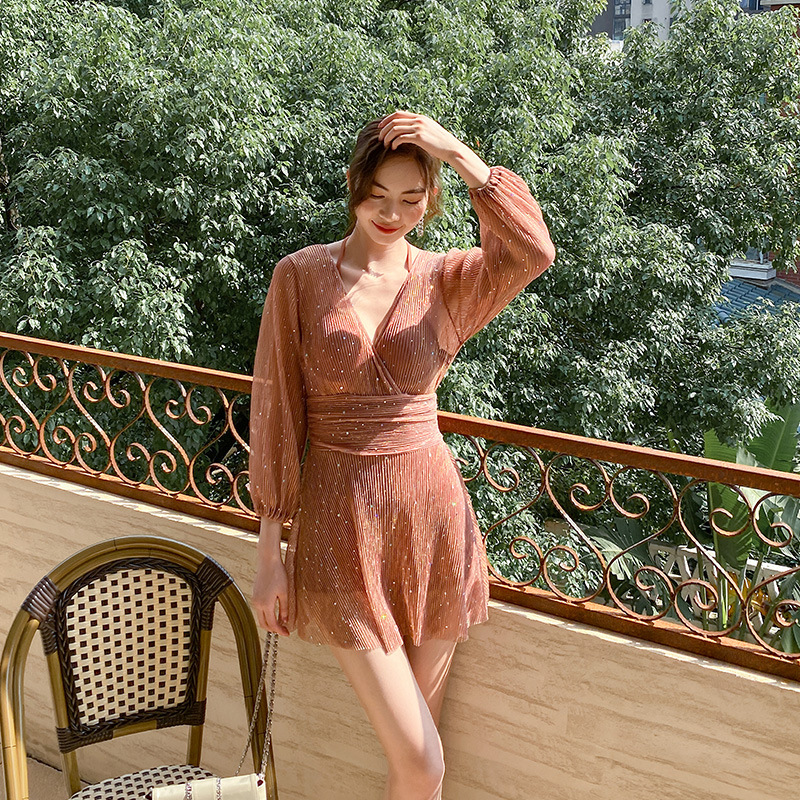 Xigeer 수영복 여성 2025 새로운 원피스 스커트 수영복 복서 보수적 인 배 커버 슬리밍 온천 수영복 여성스토어 가기