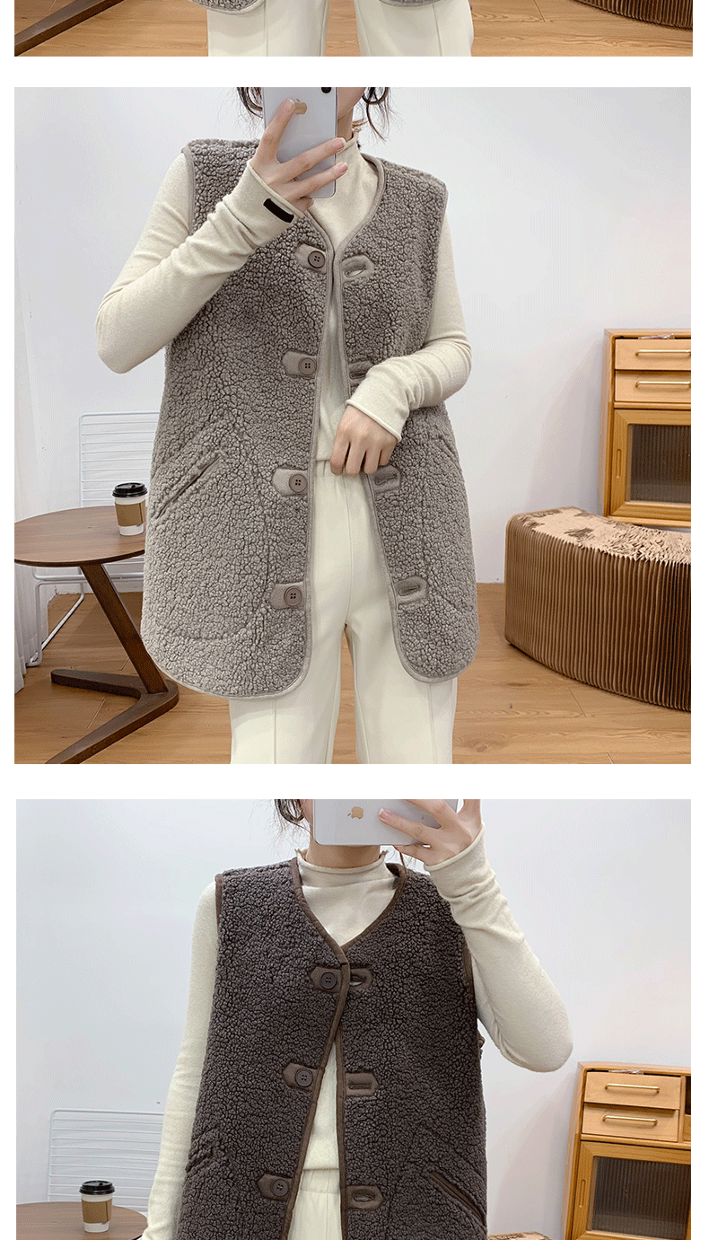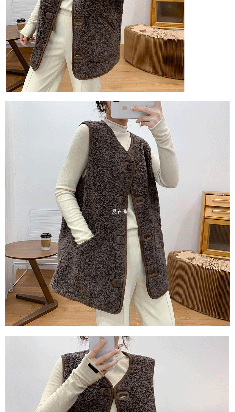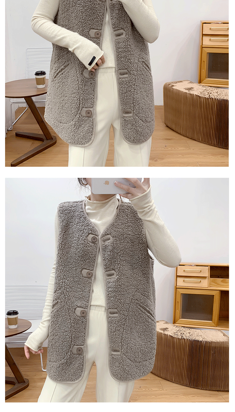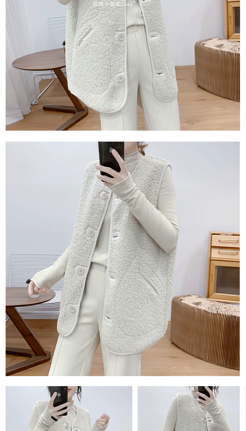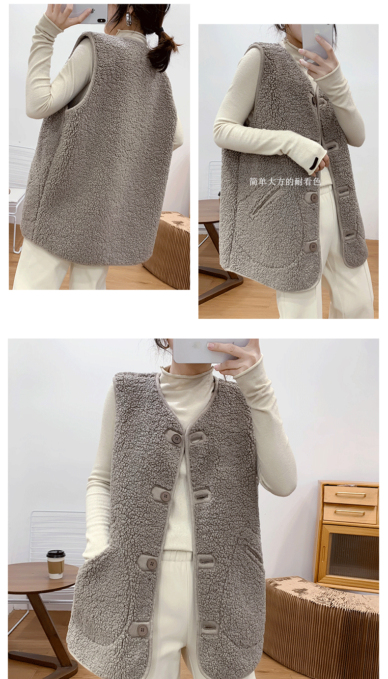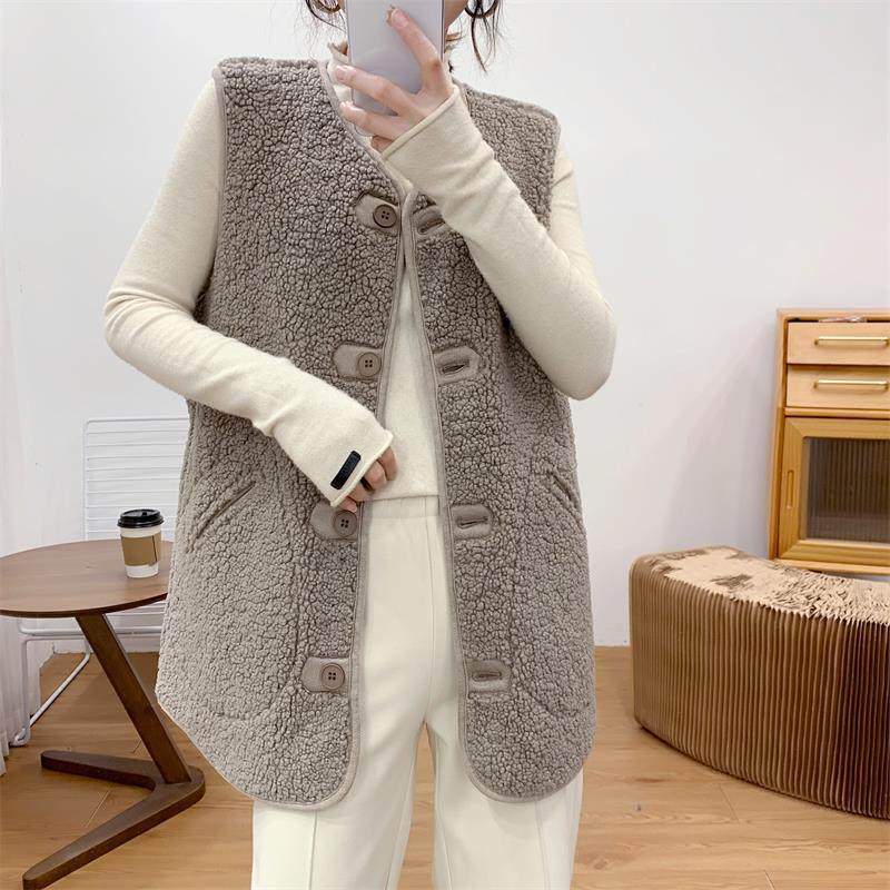 새로운 양고기 봉제 중간 길이 조끼 여성용 빈티지 우아한 양면 웨어러블 모피 원피스 조끼 민소매 조끼스토어 가기