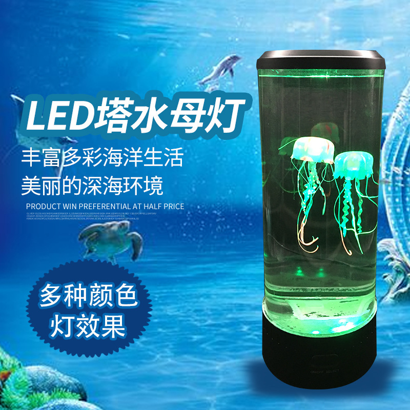 4、将水母的触须平整后,放入水中,盖上盖子。打开开关即可。