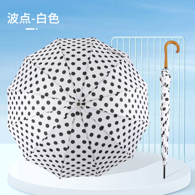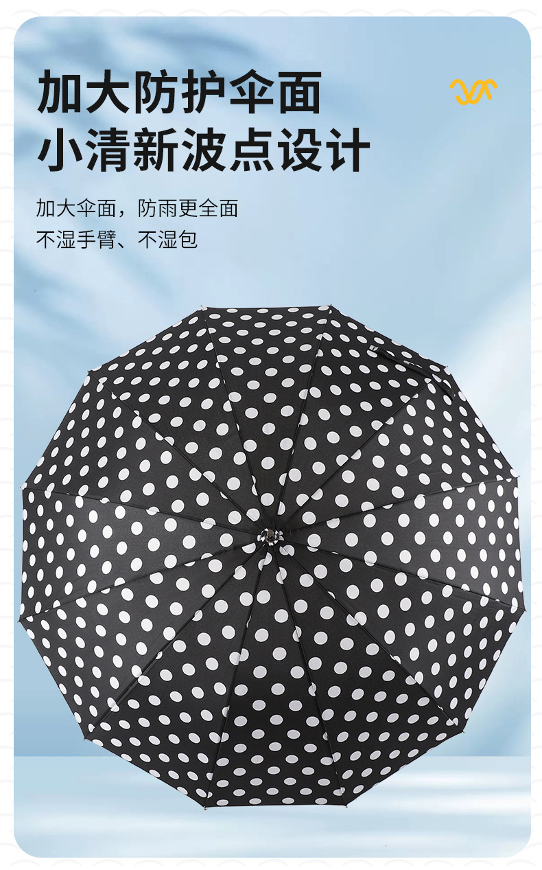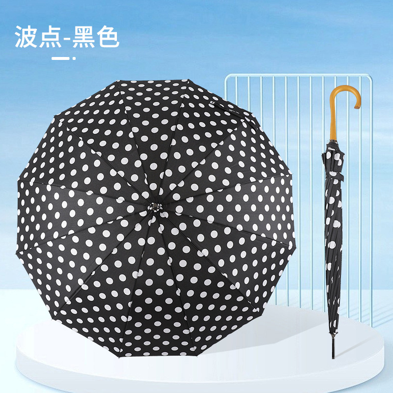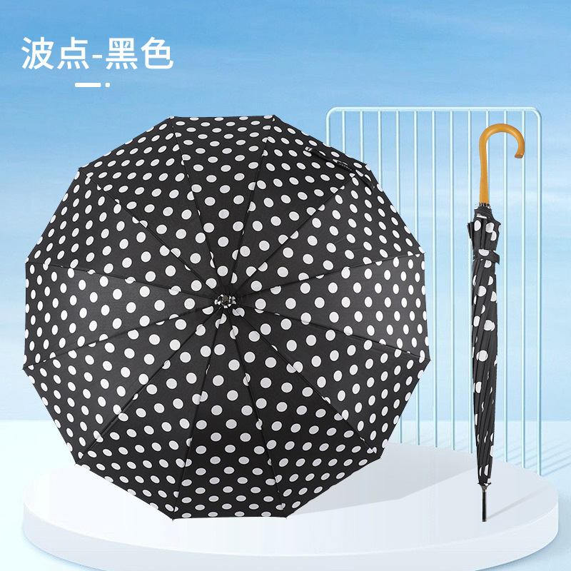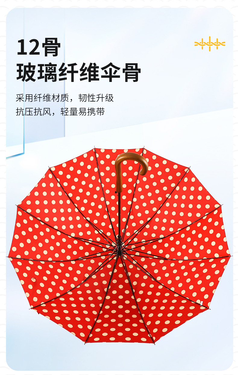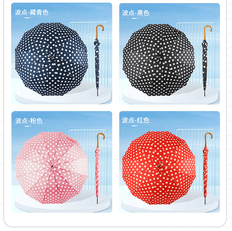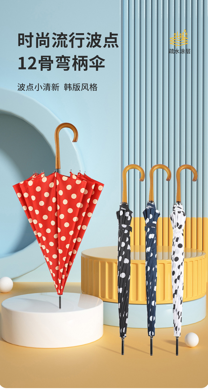 레트로 홍콩풍 자동 우산, 물방울 무늬 12개 뼈대, 비가 오나 눈이 오나 사용 가능한 빨간색 우산, 여성용 고급 롱 핸들 우산스토어 가기