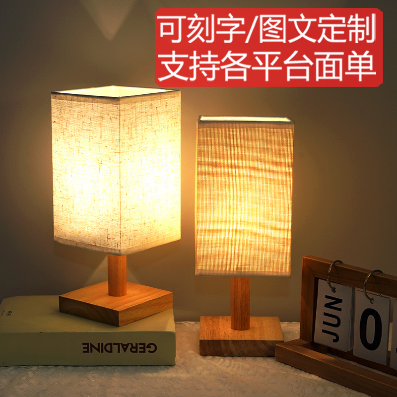 북유럽 단단한 나무 직물 usb 테이블 램프 장식 침실 침대 램프 연구 기숙사 원격 제어 Led 밤 빛 창조적 인스토어 가기