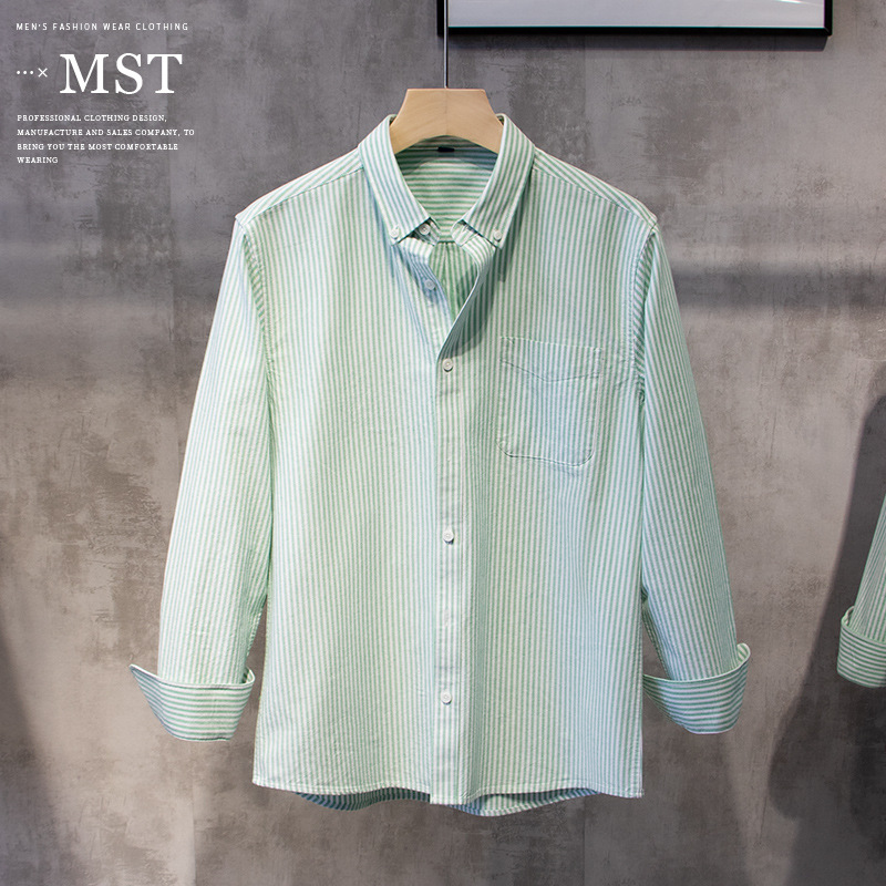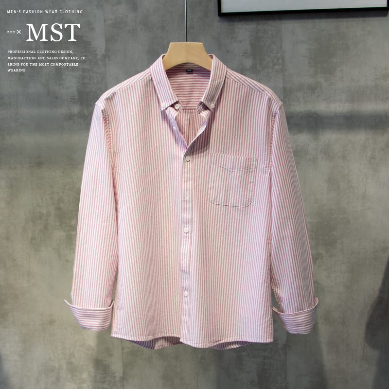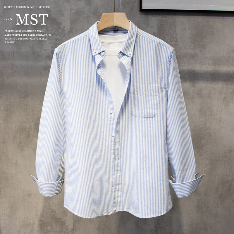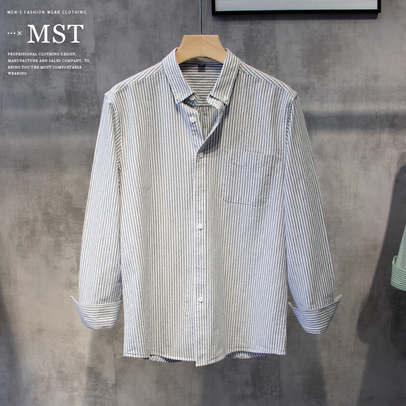 재고 간단한 세로 줄무늬 단색 옷깃 남자 면 셔츠 한국 캐주얼 긴 소매 인치 얇은 코트 도매스토어 가기