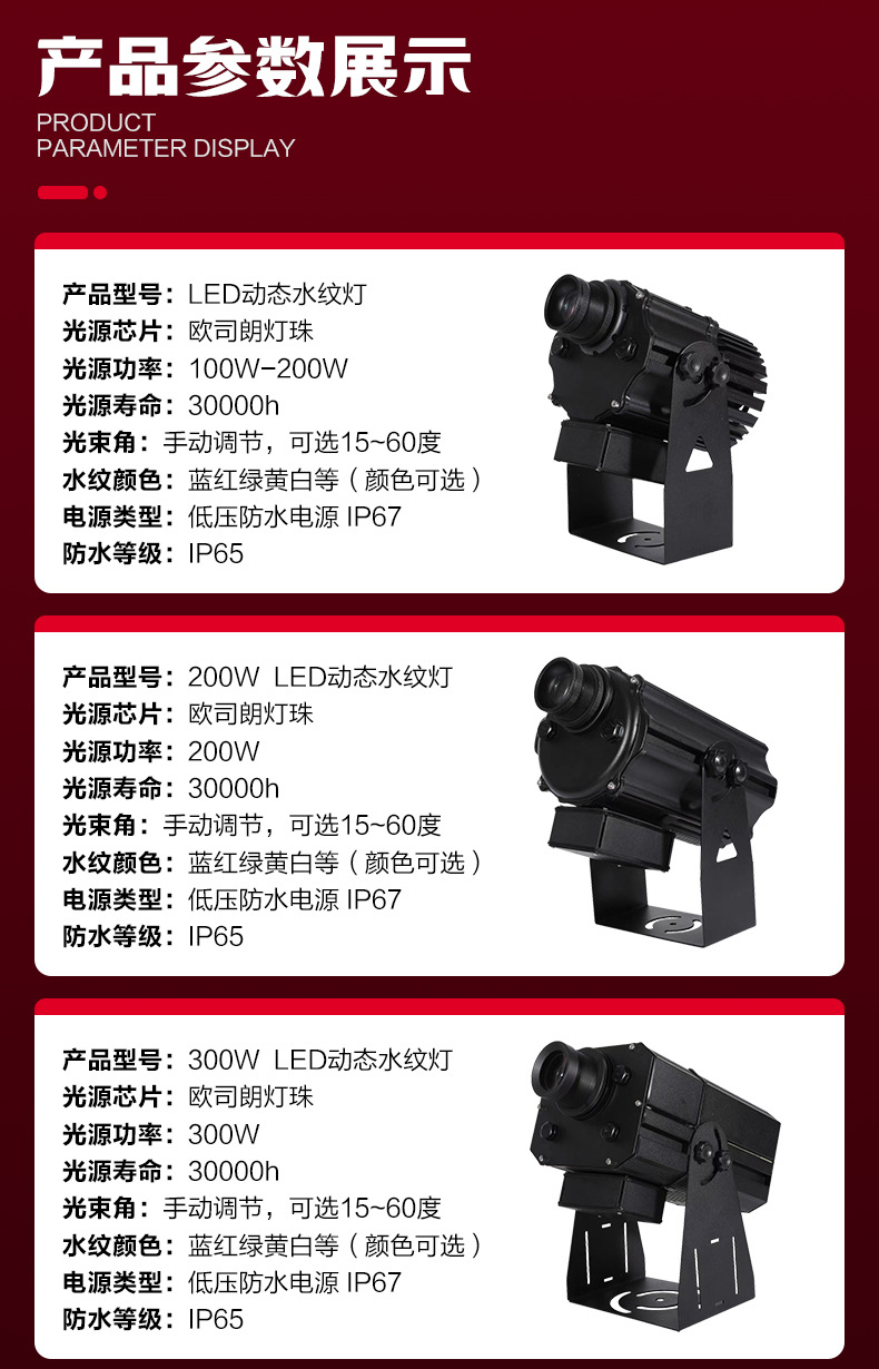 • 방수 300W 워터 패턴 램프/흐름 효과(고출력)