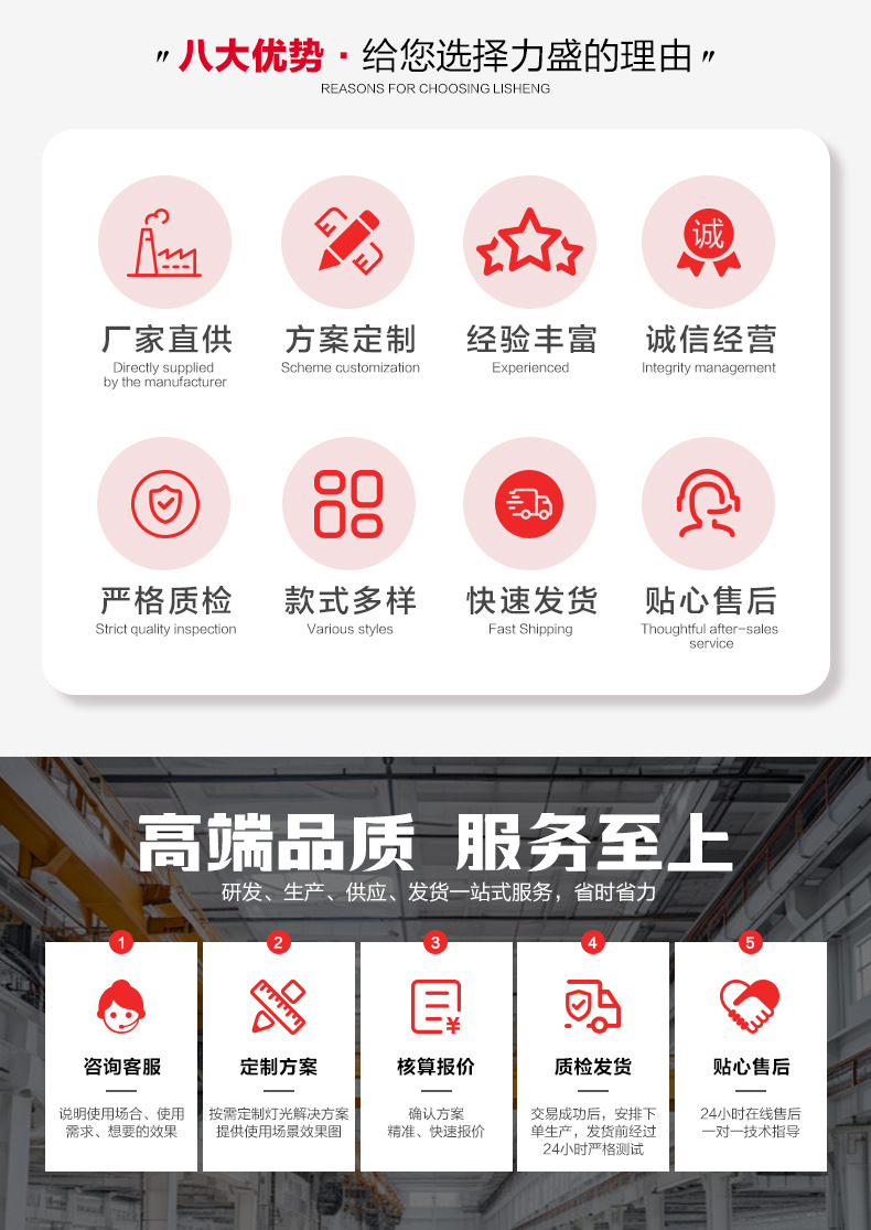 • 产品均由力盛舞台灯光设备厂直接生产,力盛舞台灯光厂均走高端产品路线,我们保持着:不打价格战,不因价格扰乱产品的质量原则,赢得了大量的客户好评!
