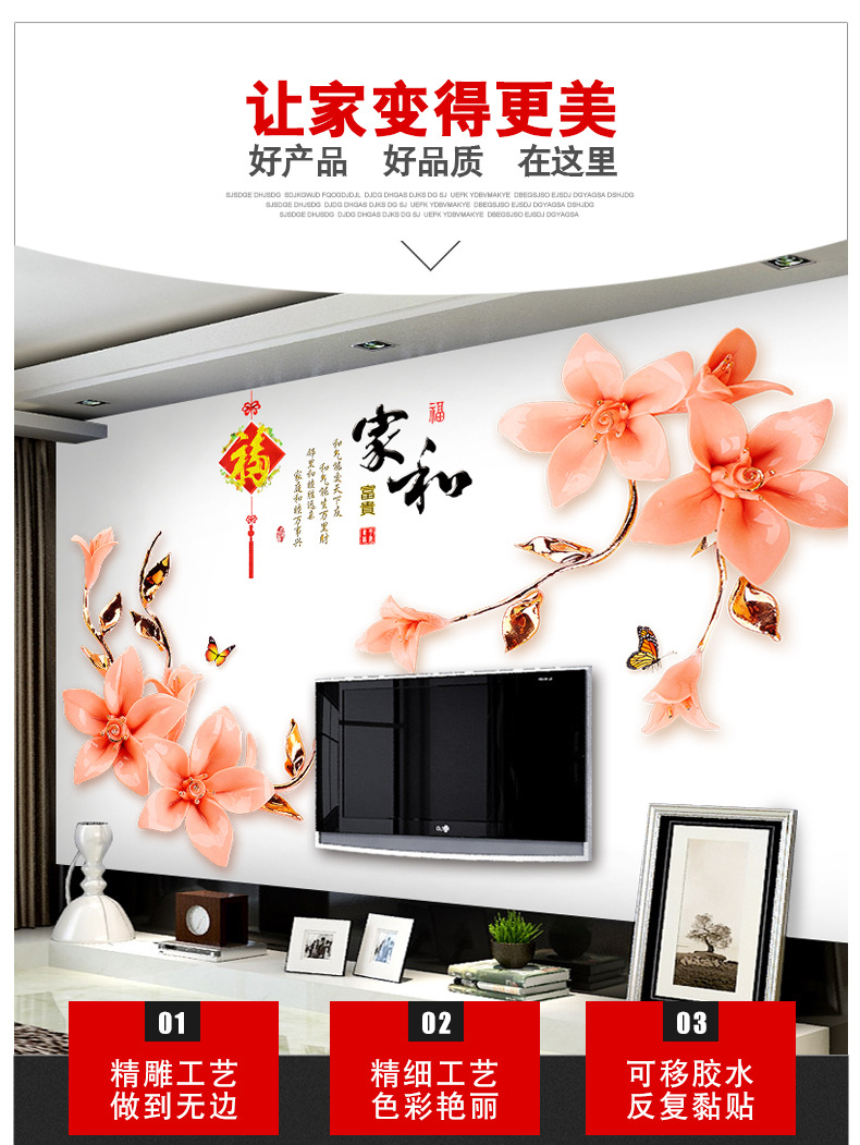 TV 배경 벽 스티커 침실 따뜻한 거실 벽 방 장식 벽지 자체 접착 벽지 기숙사 스티커스토어 가기