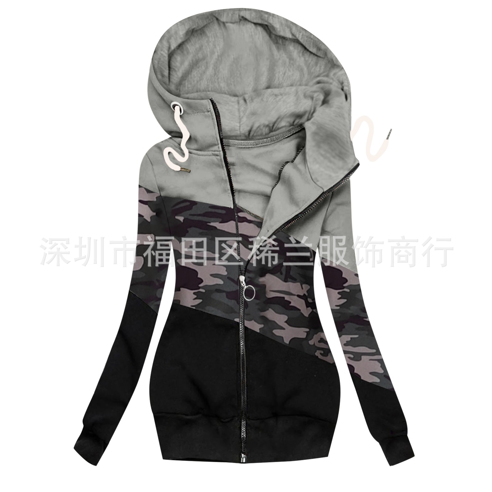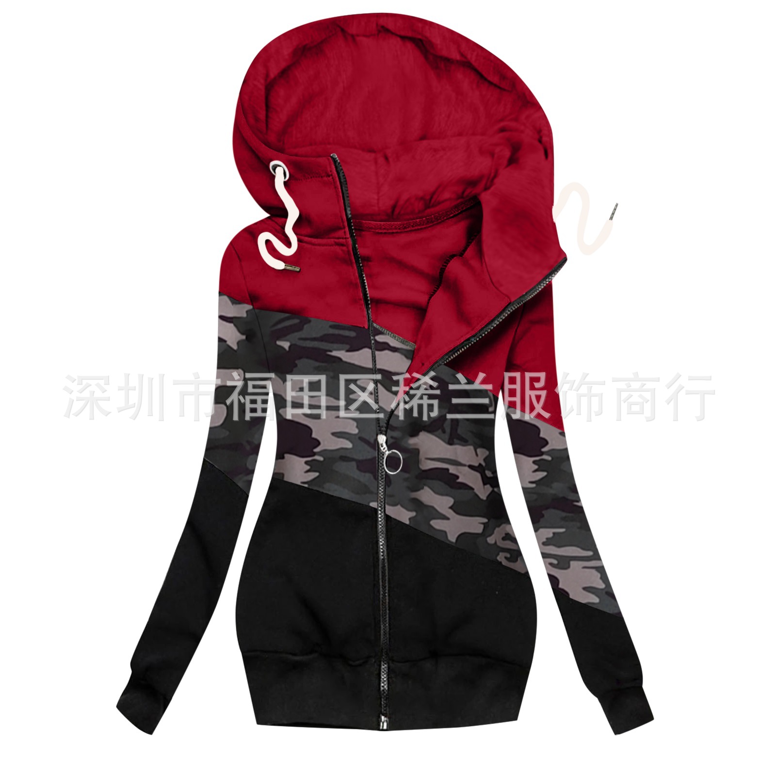2022 크로스 보더 이베이 AliExpress 아마존 대외 무역 폭발 스웨터 지퍼 컬러 매칭 후드 긴 소매 코트