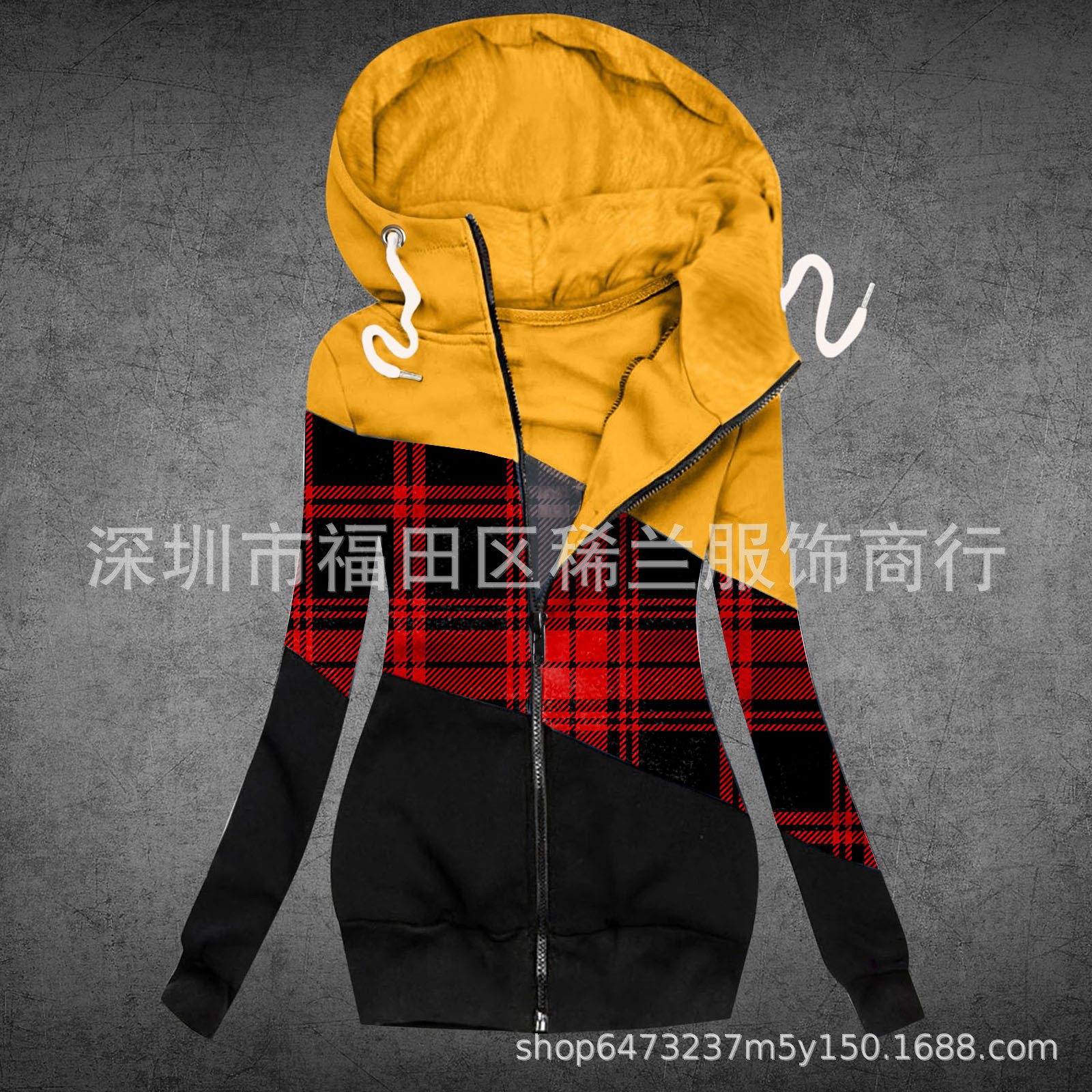 2022 크로스 보더 이베이 AliExpress 아마존 대외 무역 폭발 스웨터 지퍼 컬러 매칭 후드 긴 소매 코트스토어 가기