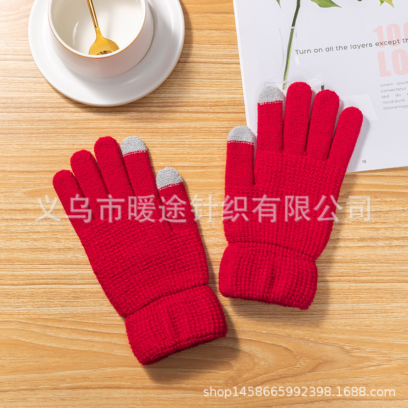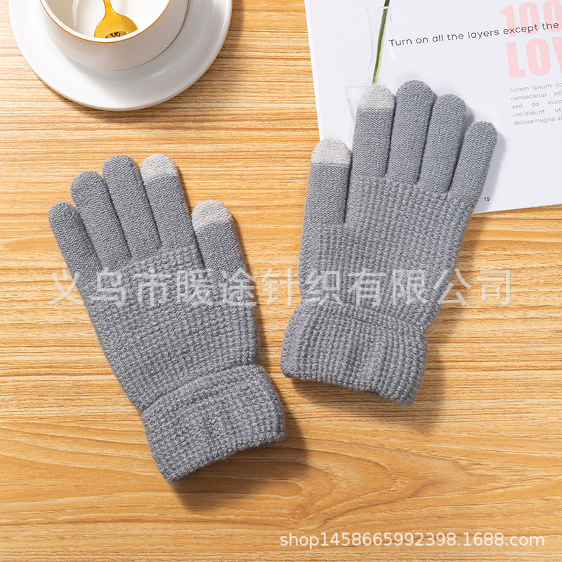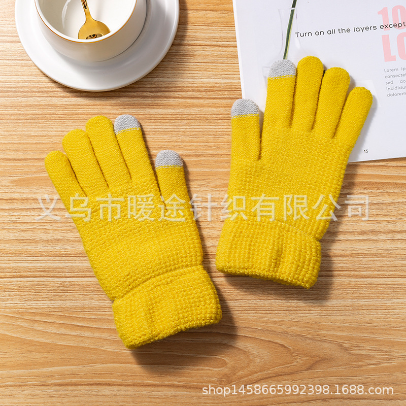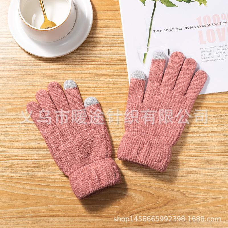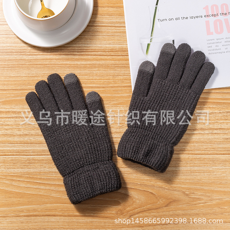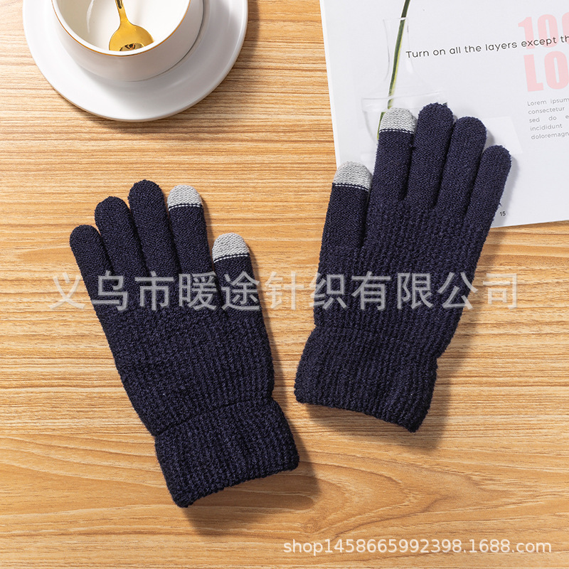 新款时尚保暖加厚加绒保暖提花男女情侣学生触摸屏仿羊绒针织手套,柔软性好,保暖性强。环保材质。