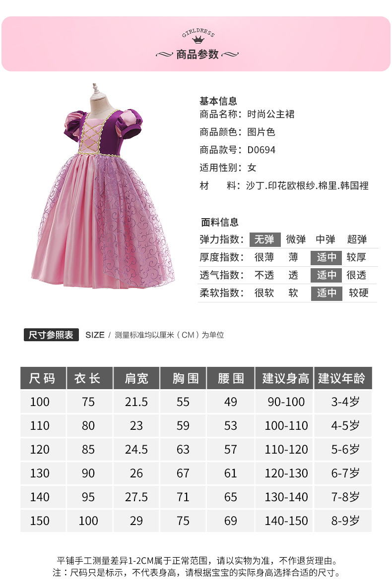 라푼젤 냉동 어린이 원피스 대외 무역 어린이 원피스 소녀 원피스 라푼젤 원피스