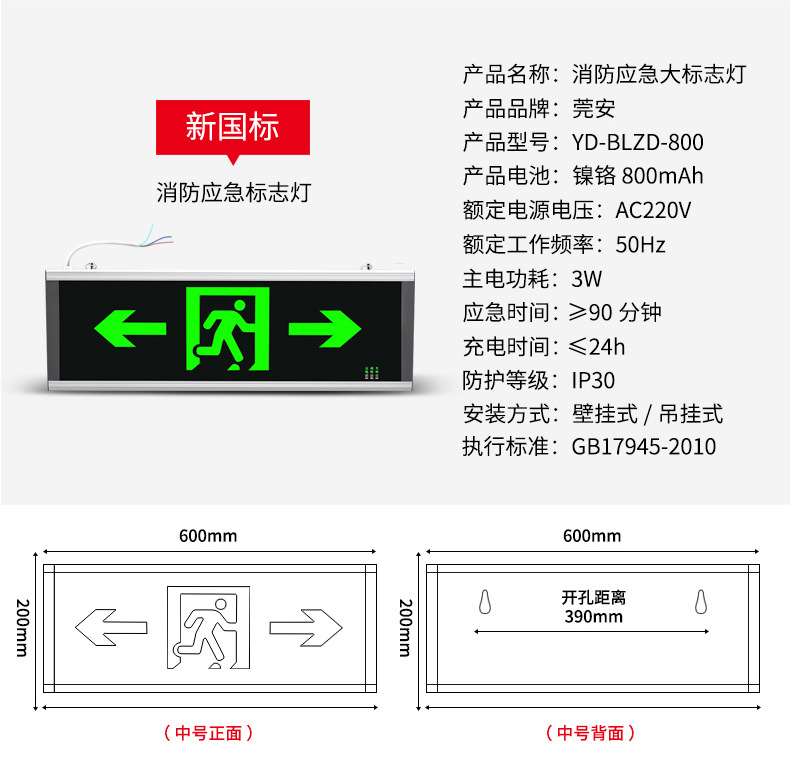 대형 안전구출구 화재 비상 표시등 600*200 초박형 표시등 비상 대피 표시