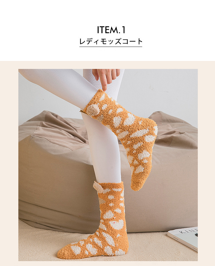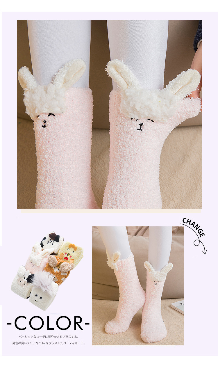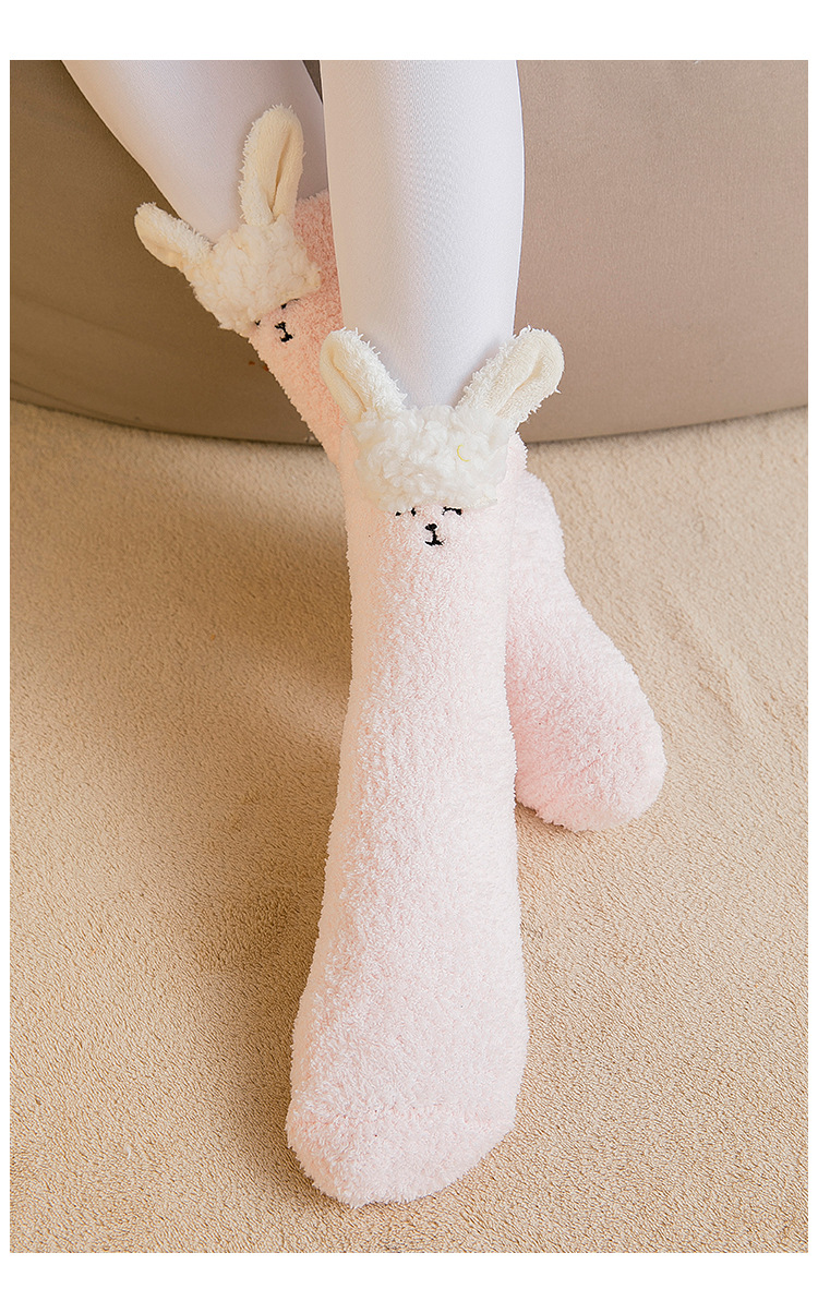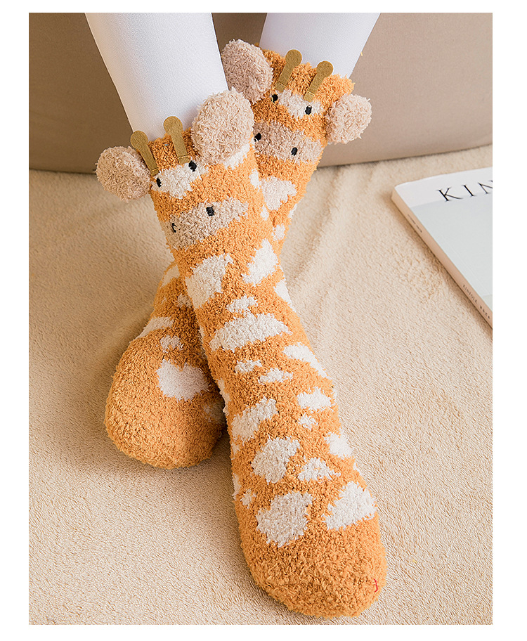 겨울 성인용 산호 벨벳 양말 여성용 귀여운 만화 두꺼운 따뜻한 홈 타월 양말 수면용 바닥 양말