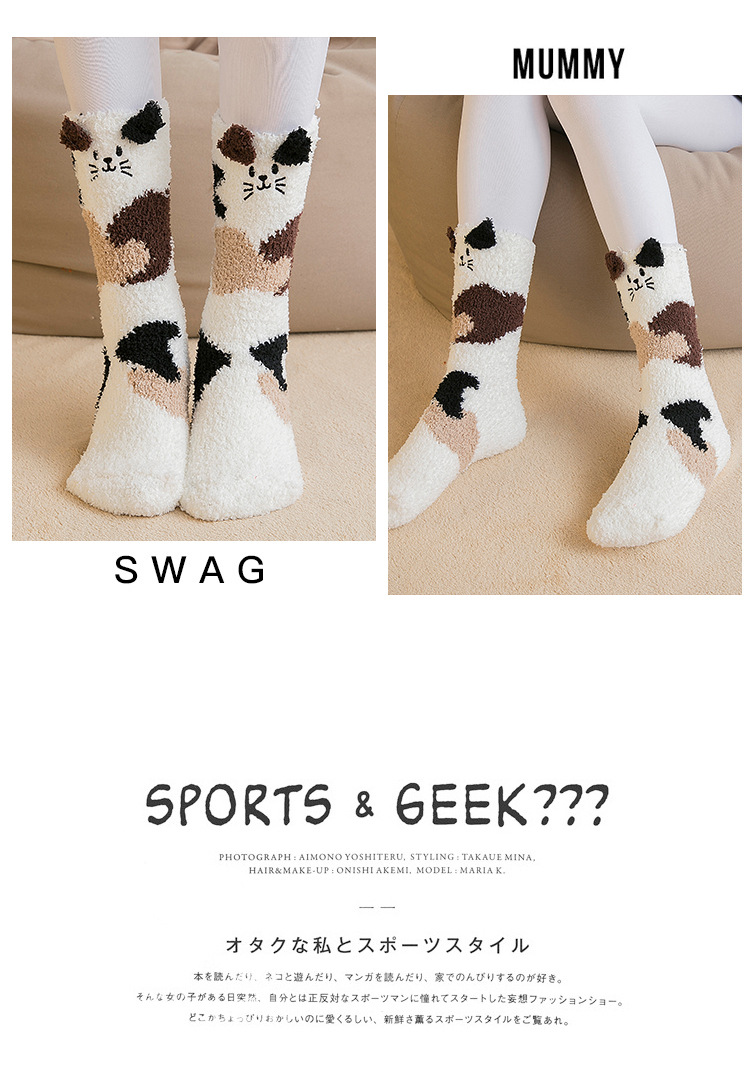겨울 성인용 산호 벨벳 양말 여성용 귀여운 만화 두꺼운 따뜻한 홈 타월 양말 수면용 바닥 양말스토어 가기