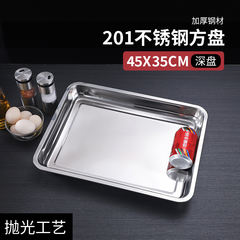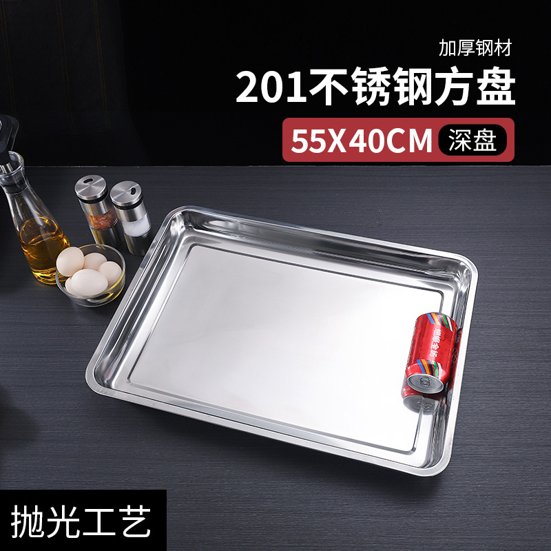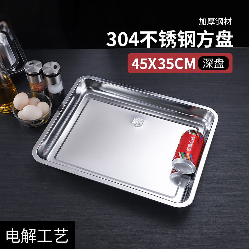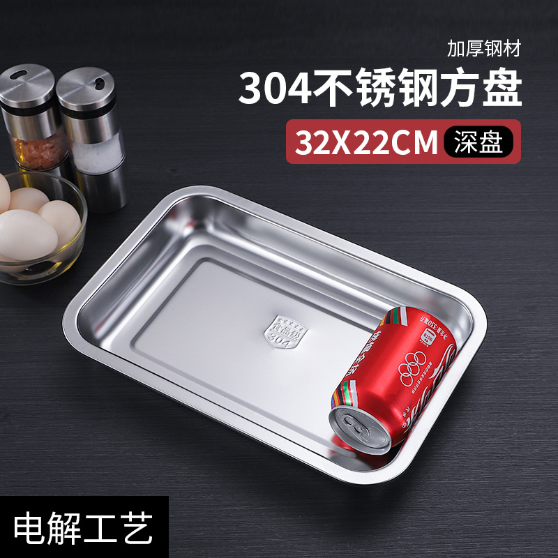 304 스테인레스 스틸 사각 접시 직사각형 트레이 깊어 두꺼운 상업용 디너 플레이트 바베큐 접시 멀티 사양 매점 접시스토어 가기