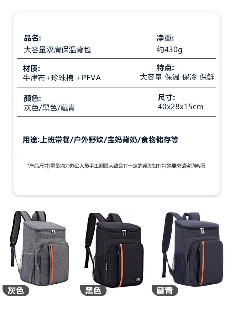 • 더블 숄더 보온 가방 그레이: 40*28*15