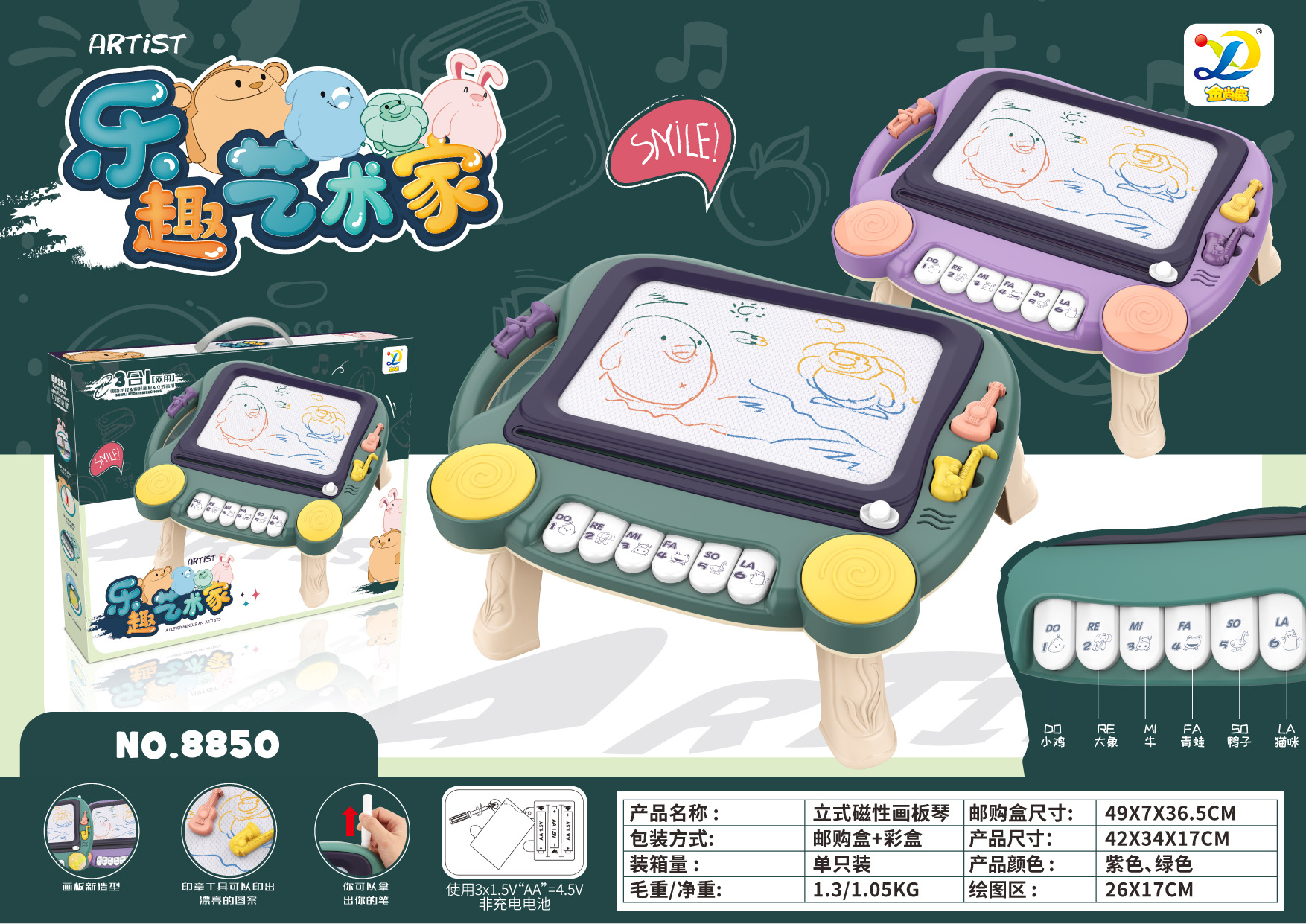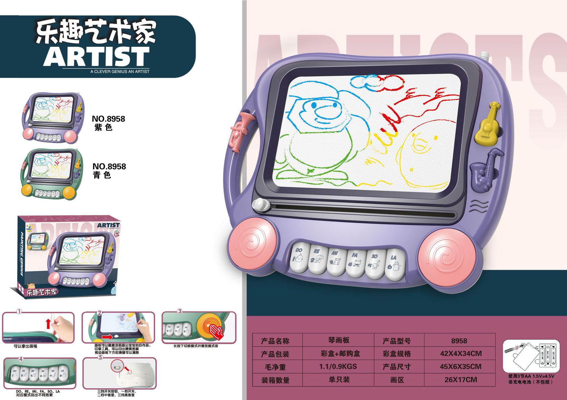 • 8958 [보라색-음악 포함] 대형 자기 드로잉 보드