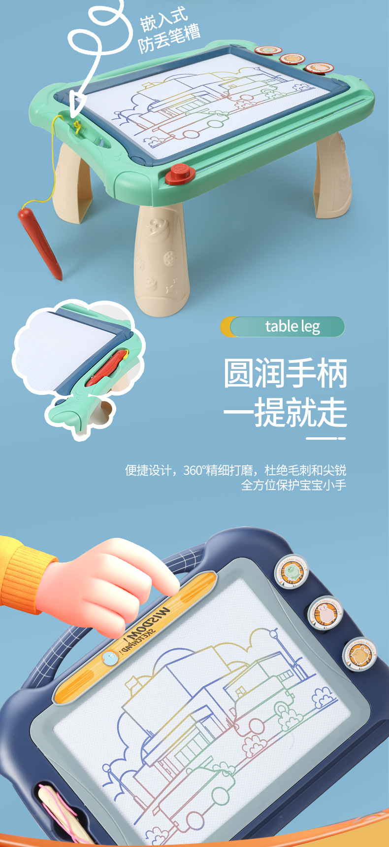 어린이와 유아를위한 대형 어린이 드로잉 보드 자기 플라스틱 필기 보드 지울 수있는 색 아기 장난감 낙서 보드스토어 가기