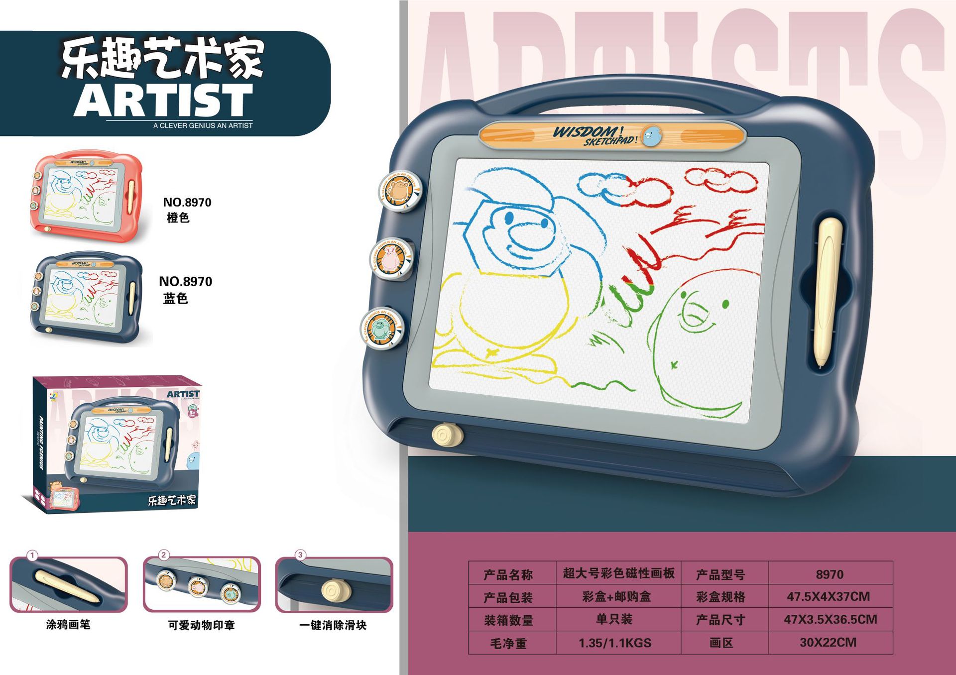 • 8970 [주황색] 대형 자석 화판 (박스 배치! 고객 서비스에 문의해야 함)