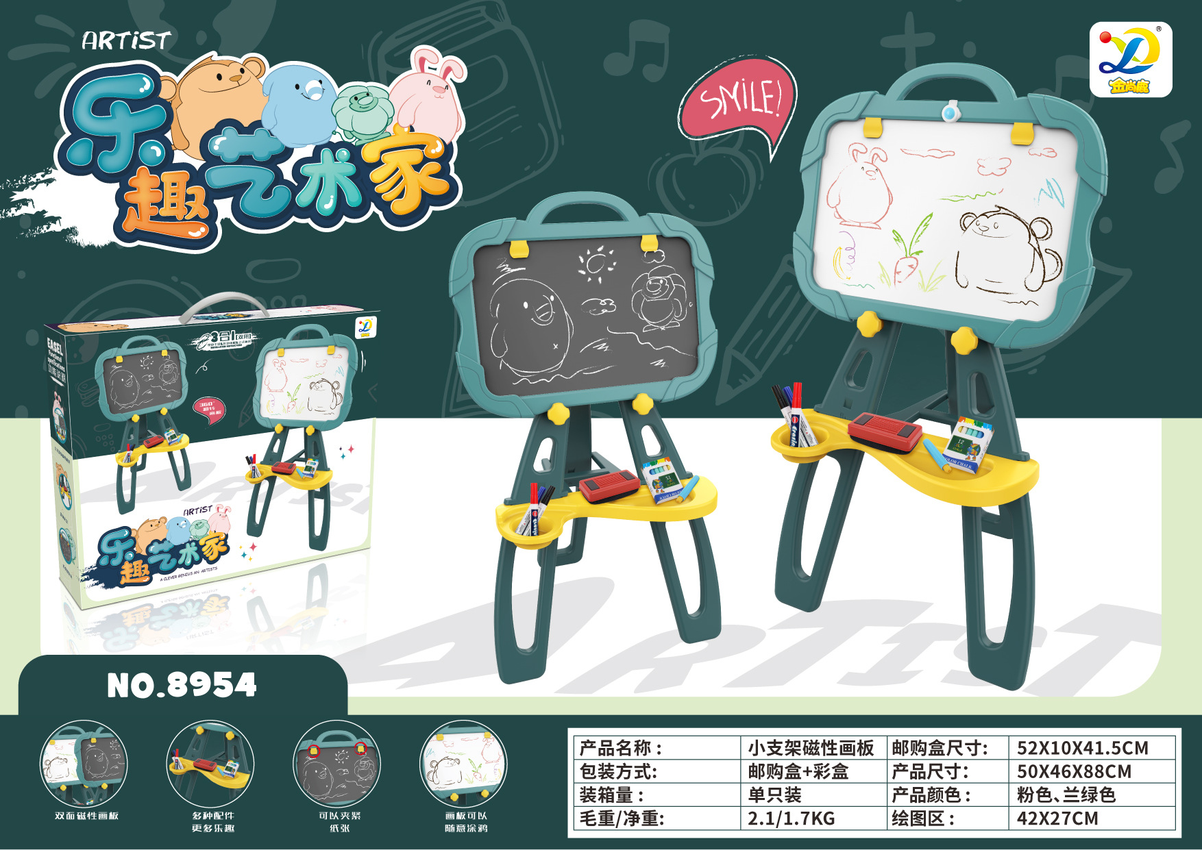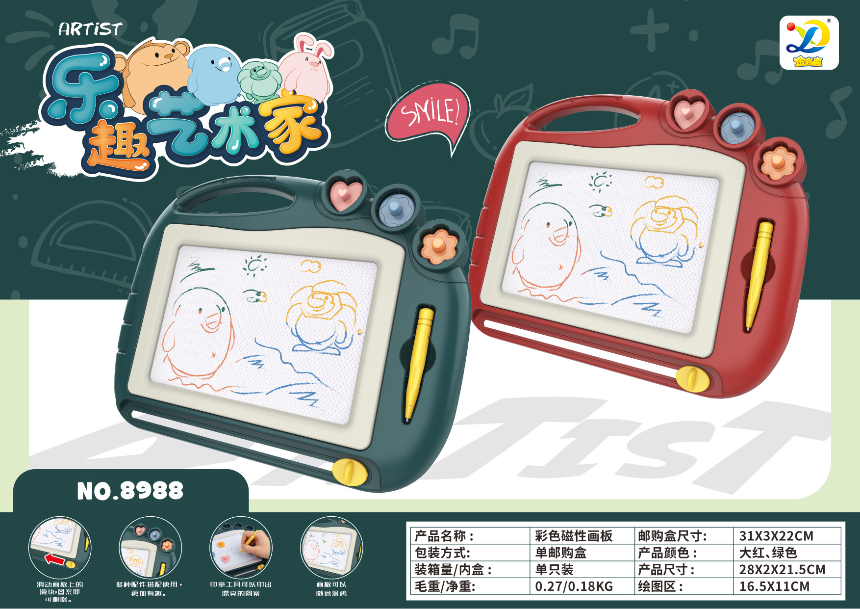 • 8958 [음악 포함 초록] 대형 자기 드로잉 보드
