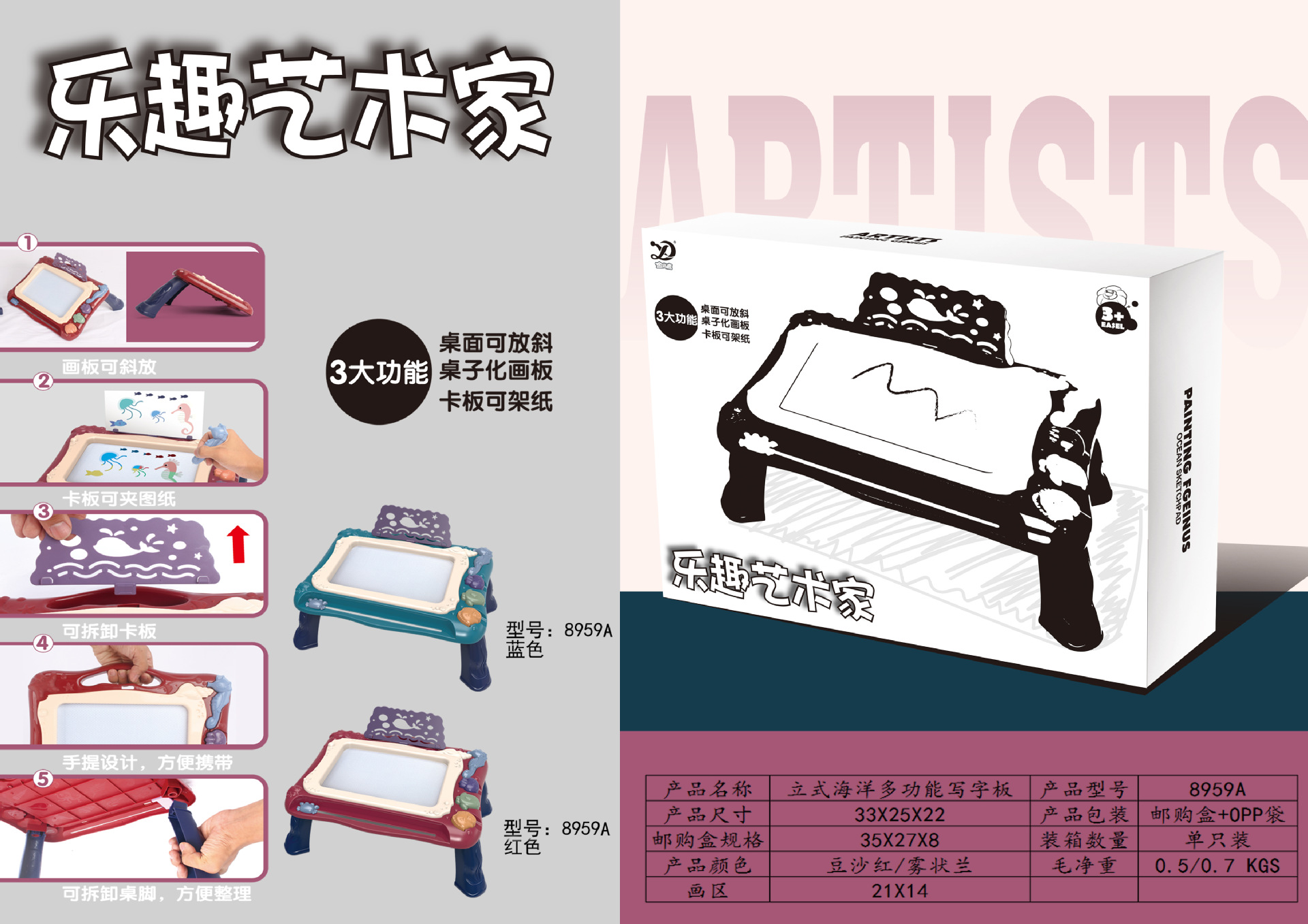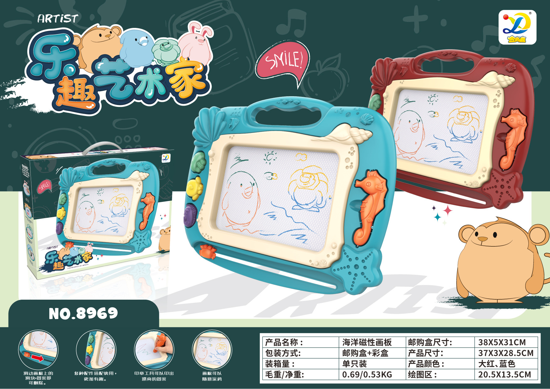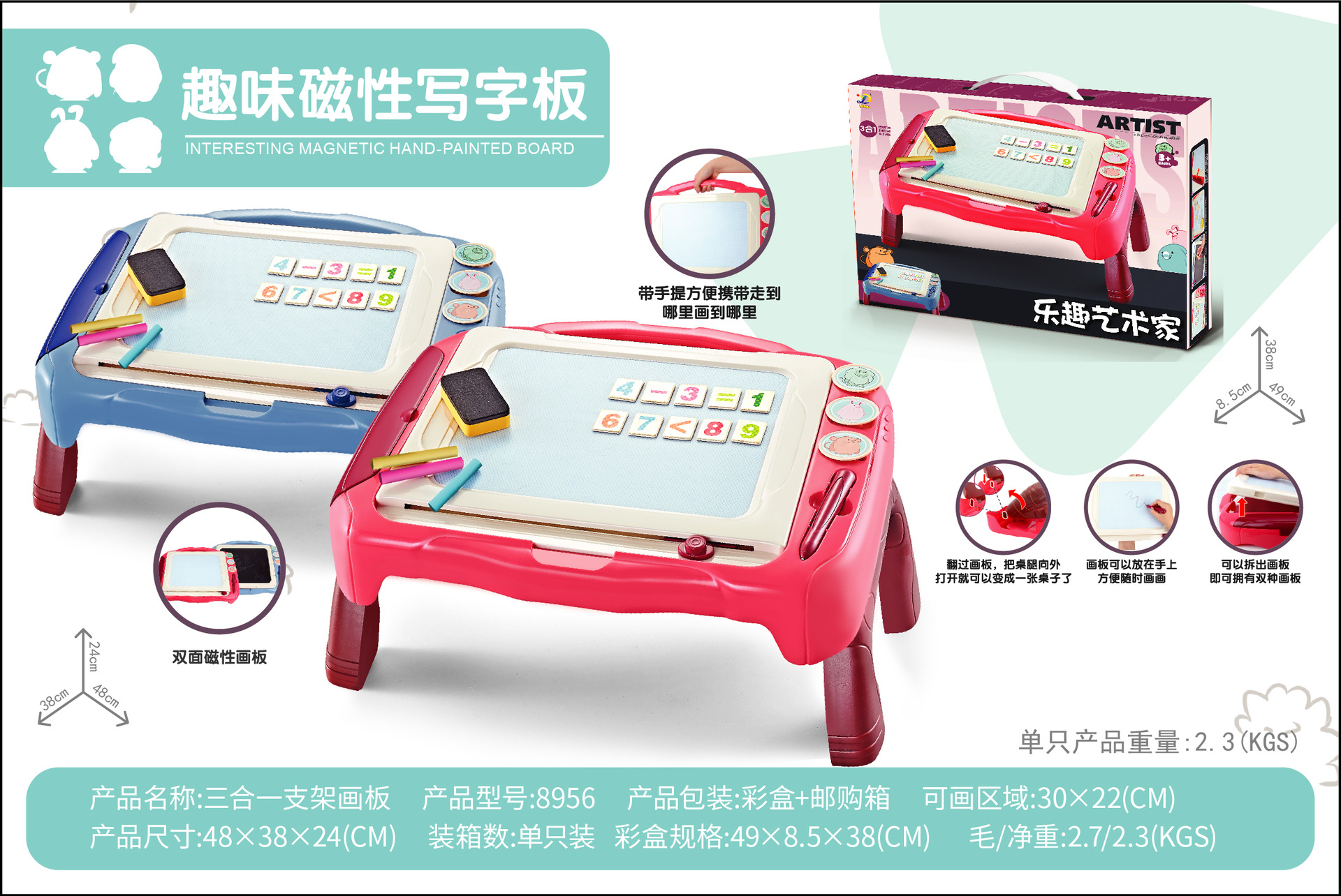 • 8965 [파랑-음악 포함] 중간 자기 드로잉 보드
