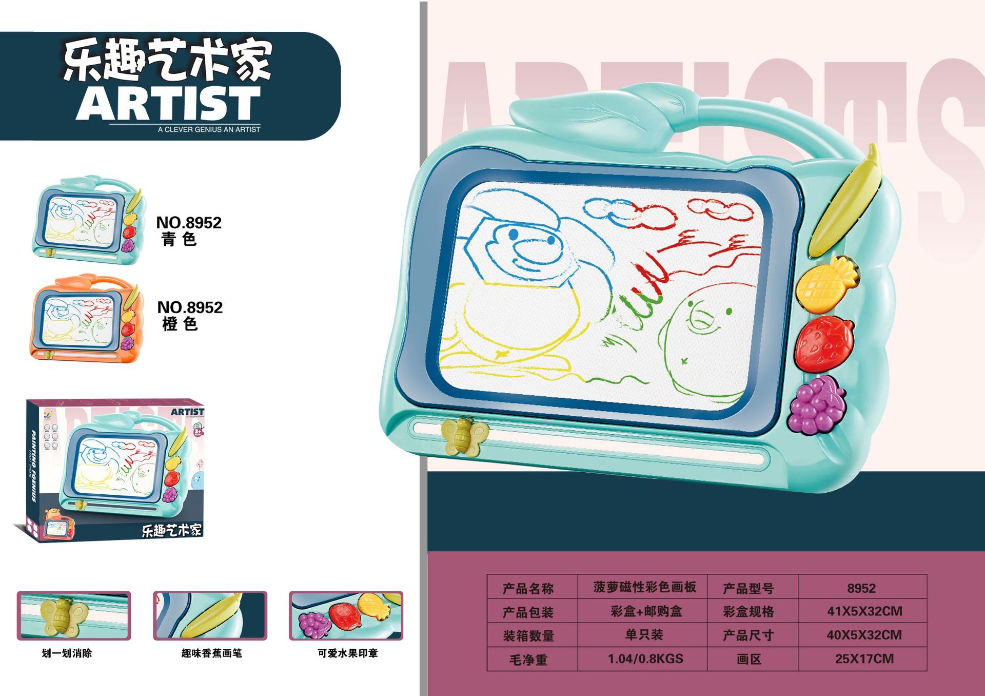 • 8952 [오렌지] 대형 과일 자기 드로잉 보드